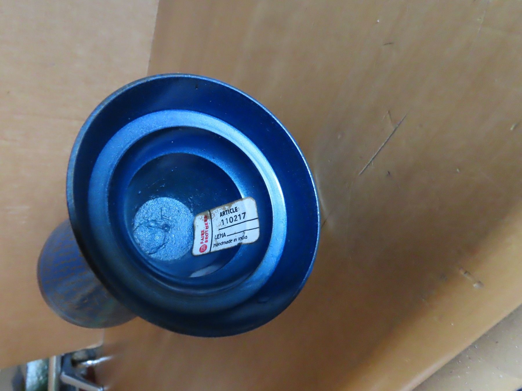 Maße: ca. 8,6 cm Durchmesser x 37cm hoch--immer die breiteste Stelle gemessen-Deckel mit gemessen die Öffnung hat einen Durchmesser von ca. 4 ca. der Standfuß hat einen Durchmesser von ca. 8 cm Material: Metall NICHT magnetisch leicht verschmutzt verstaubt, Kratzer Faire Brothers Handmade in India