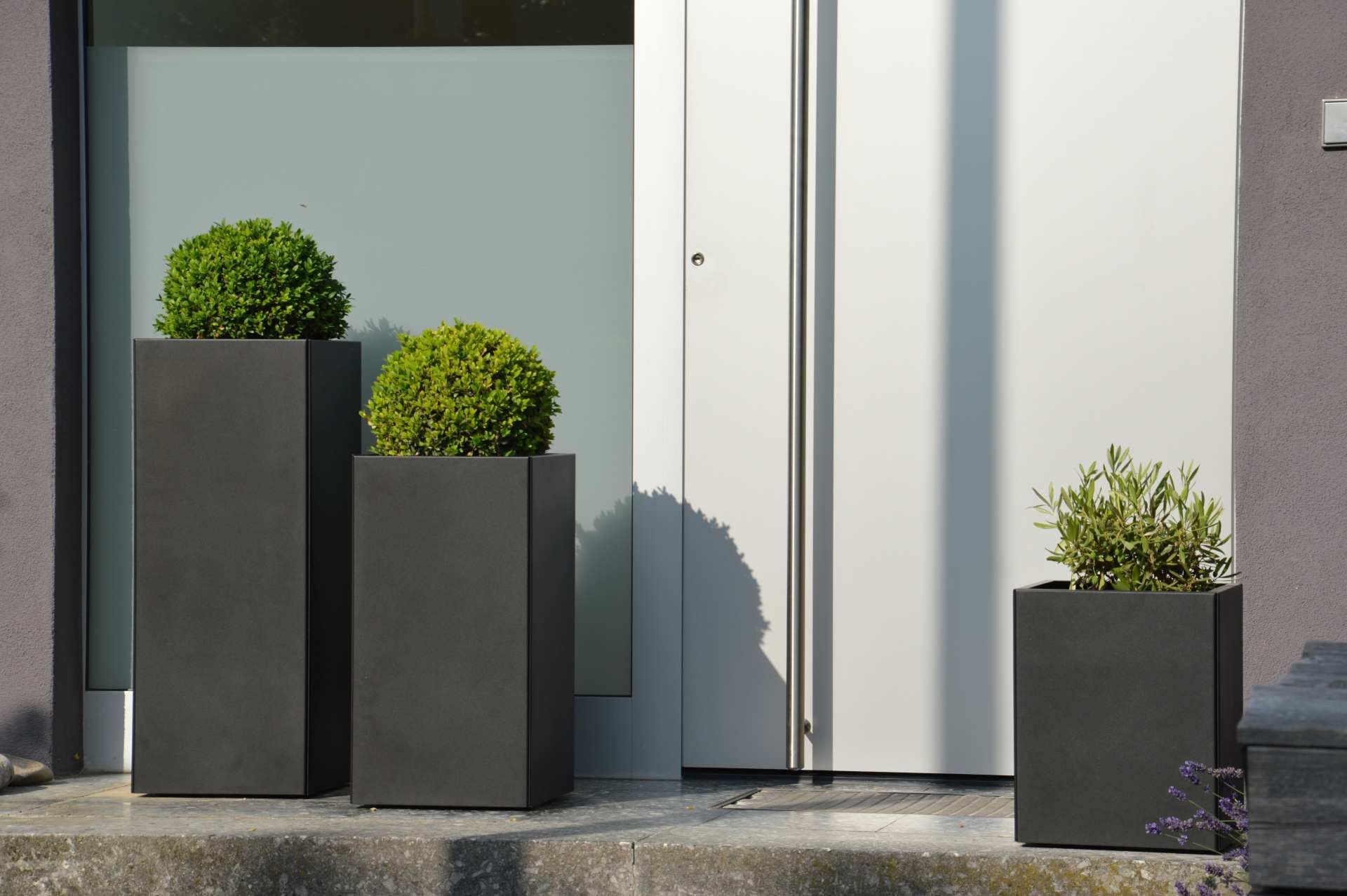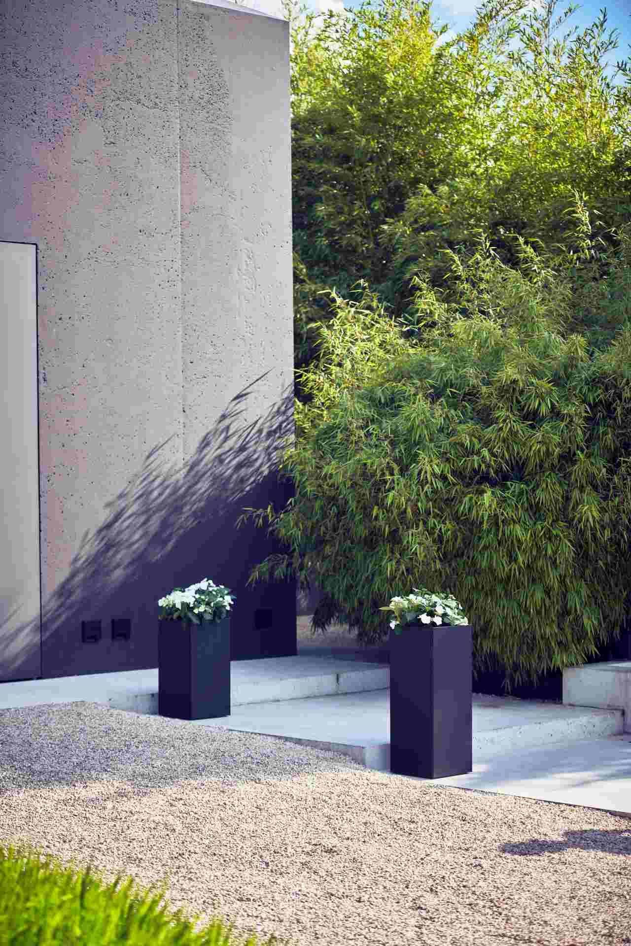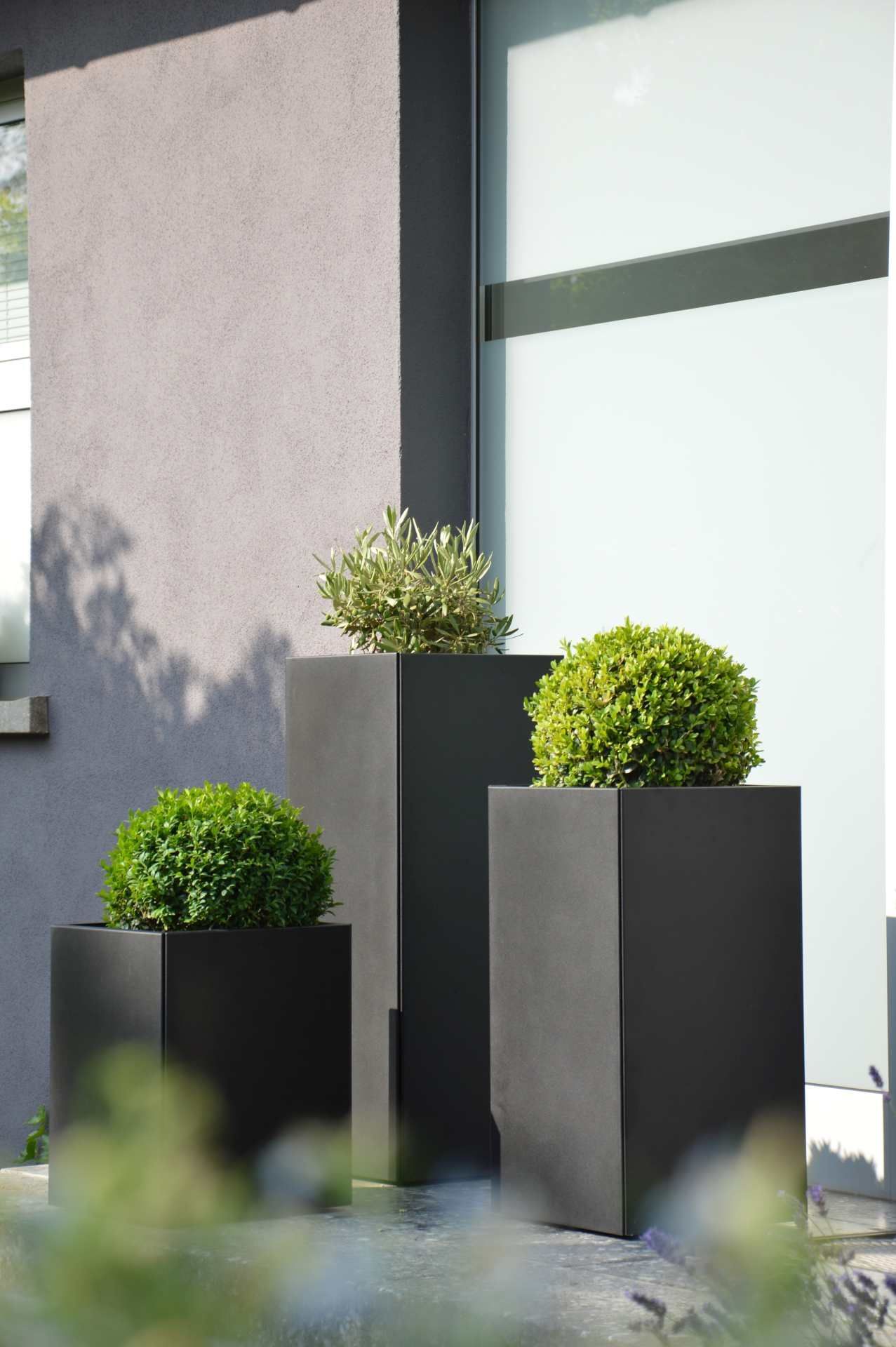 Vase Planter aus pulverbeschichtetem Metall, modern mit Rollen und Einlegeboden, schw
