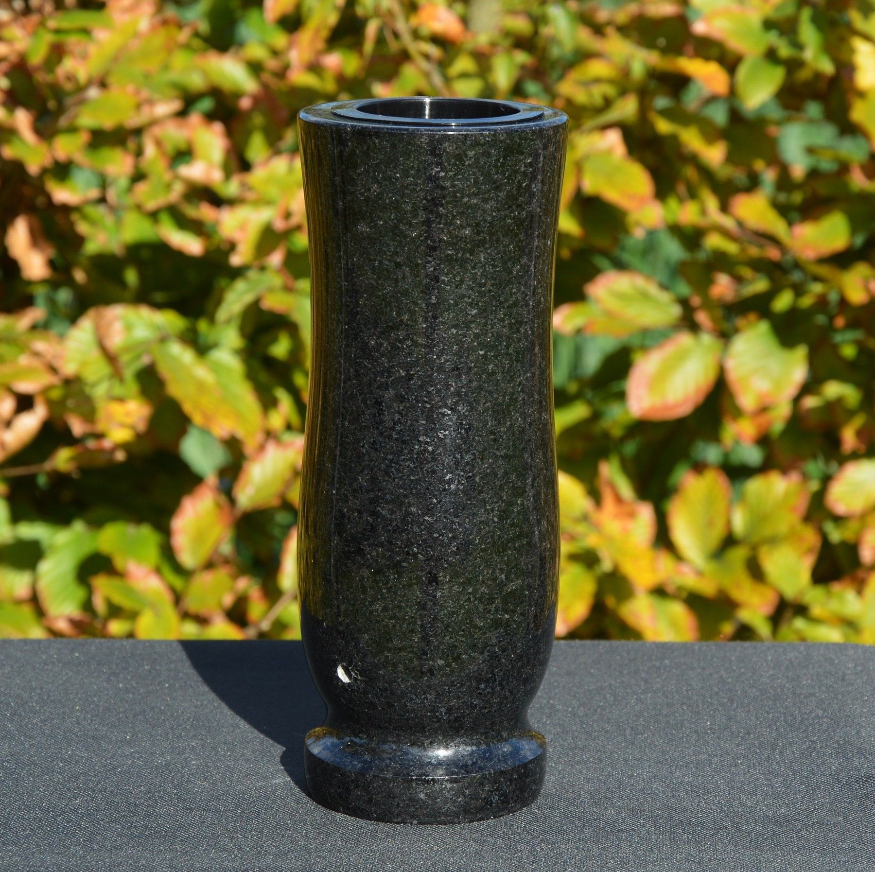 Vase Steinvase Grabvase Gartenvase Granitvase aus Granit Schwedisch Black
