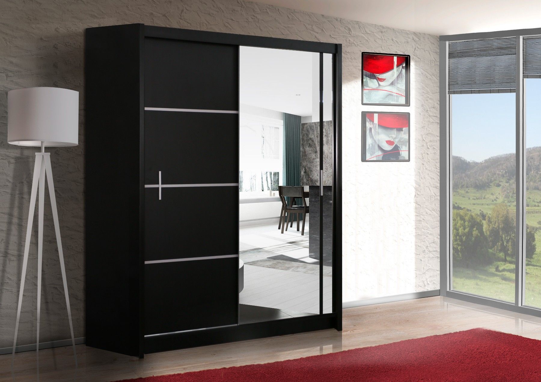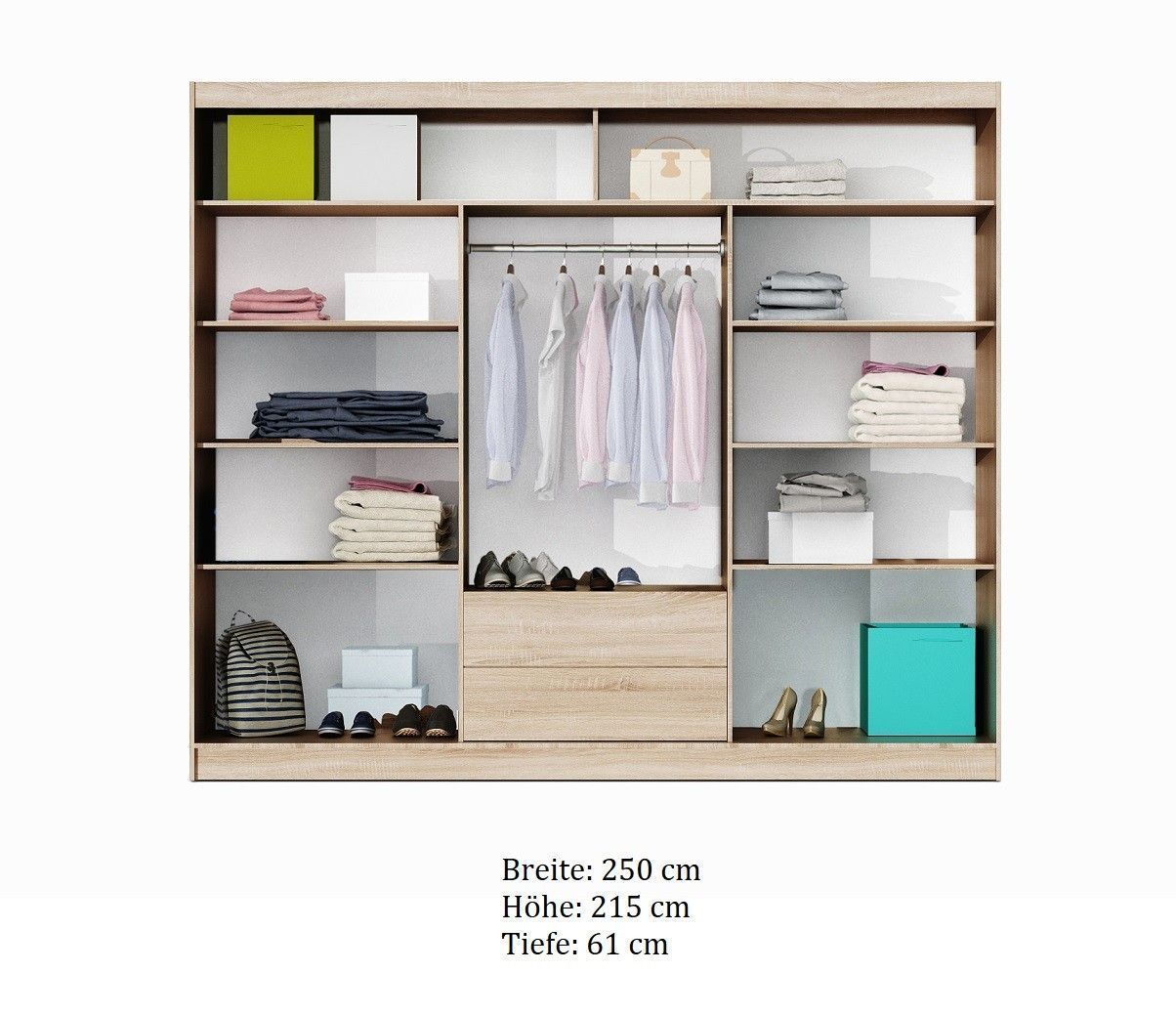 017666076782 Schrank - Vasta SPEZIFIKATION Ma ße: Breite: 150 180 203 250 cm Höhe: 215 cm Tiefe: 61 cm Farb e: Weiß + Spiegel Sonoma + Spiegel Schwarz + Spiegel Produktbeschreibung Der Schrank ist aus beschichteter Platte. Der Schrank hat zwei Schiebefronten aber der 250 cm dr