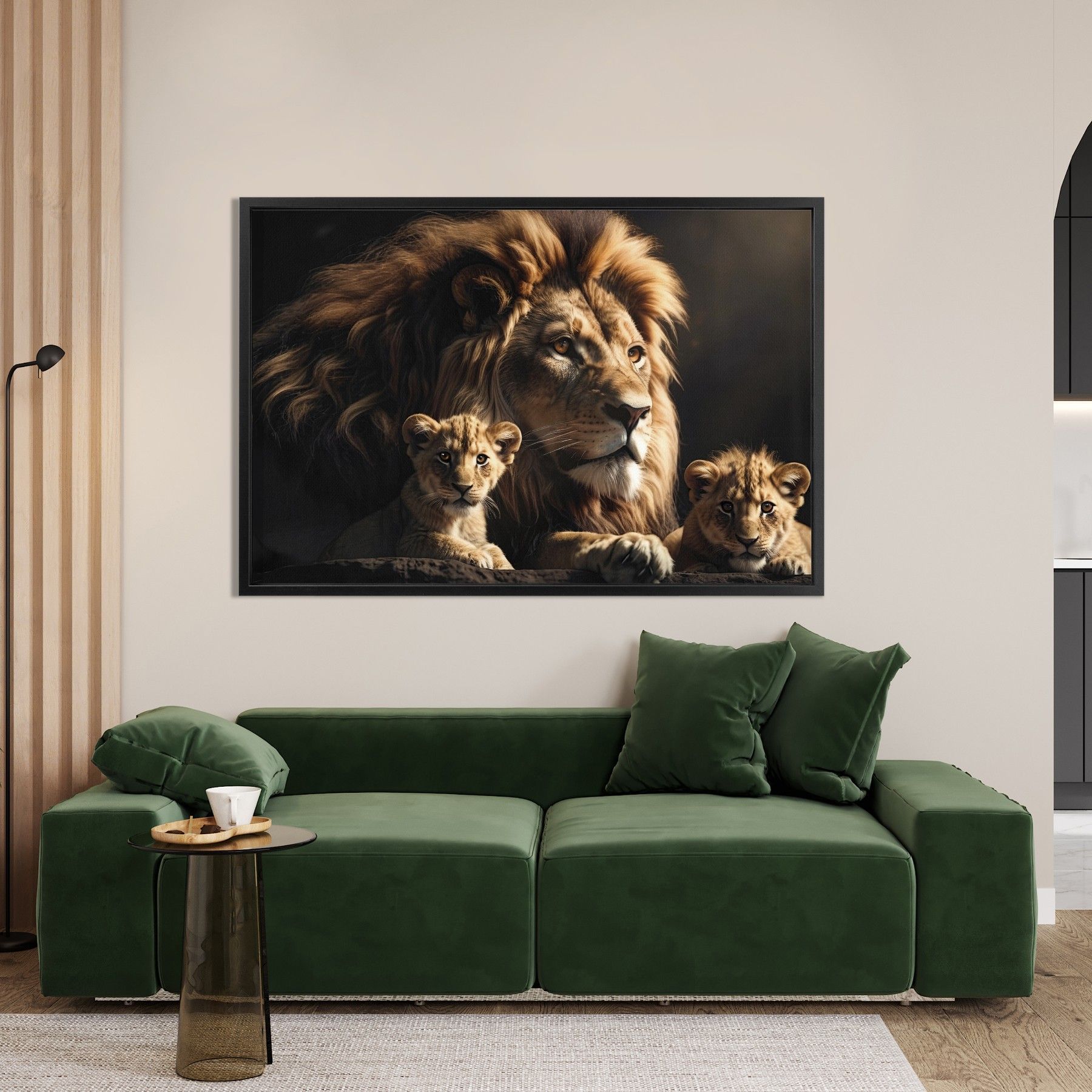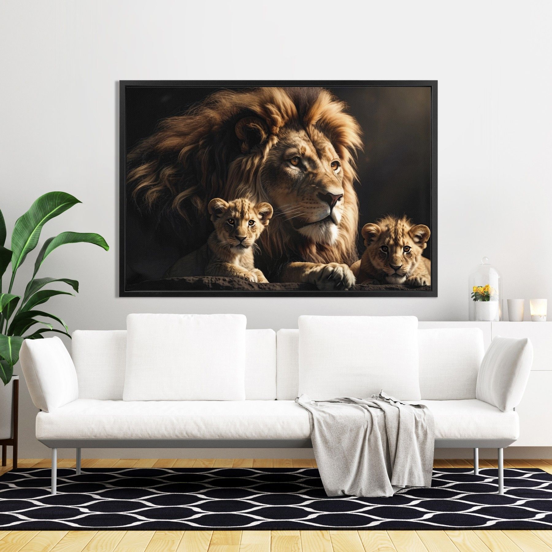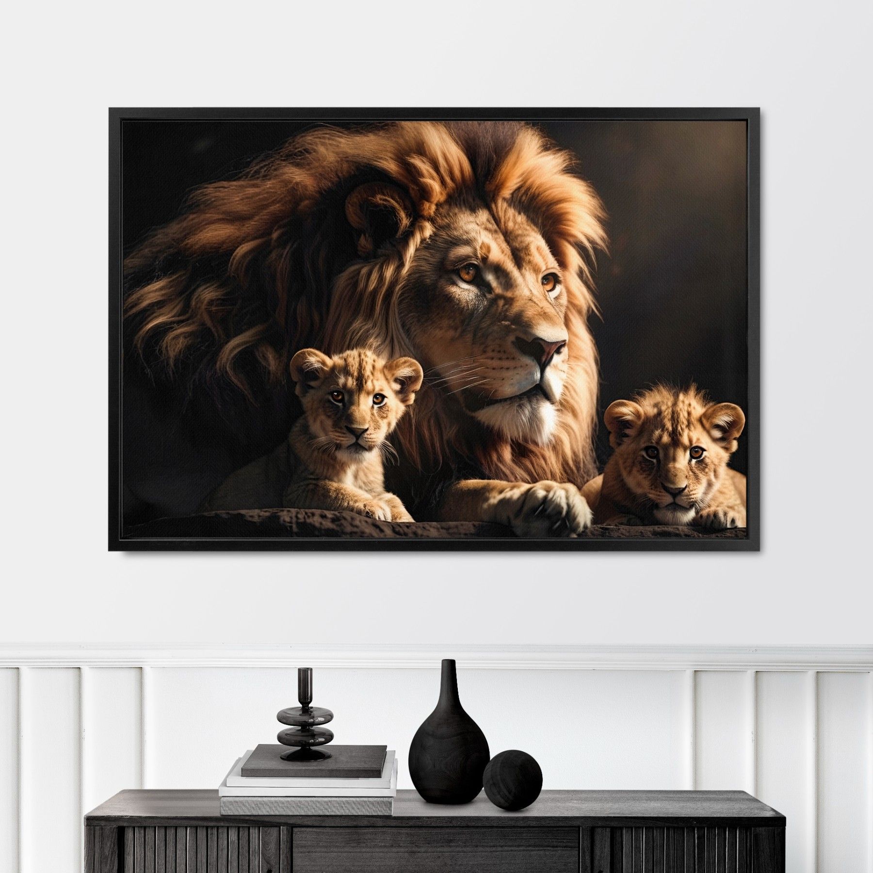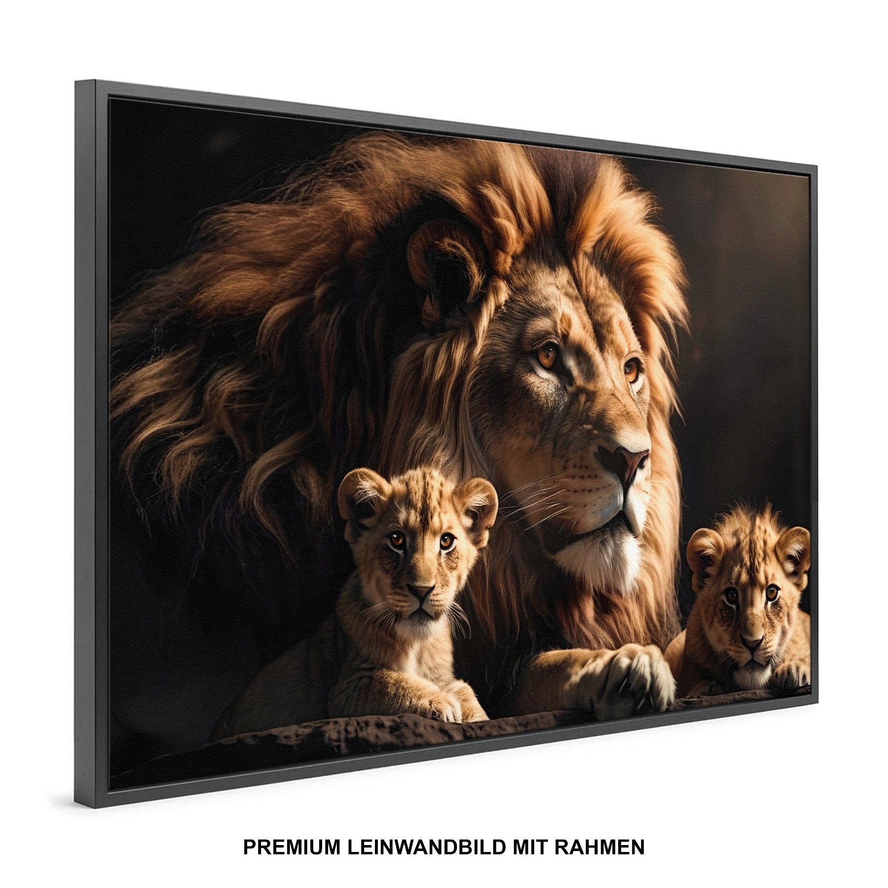 Vater der Löwe , Tier familie, Liebe Wandbild, Leinwand-Bild mit Rahmen Premium