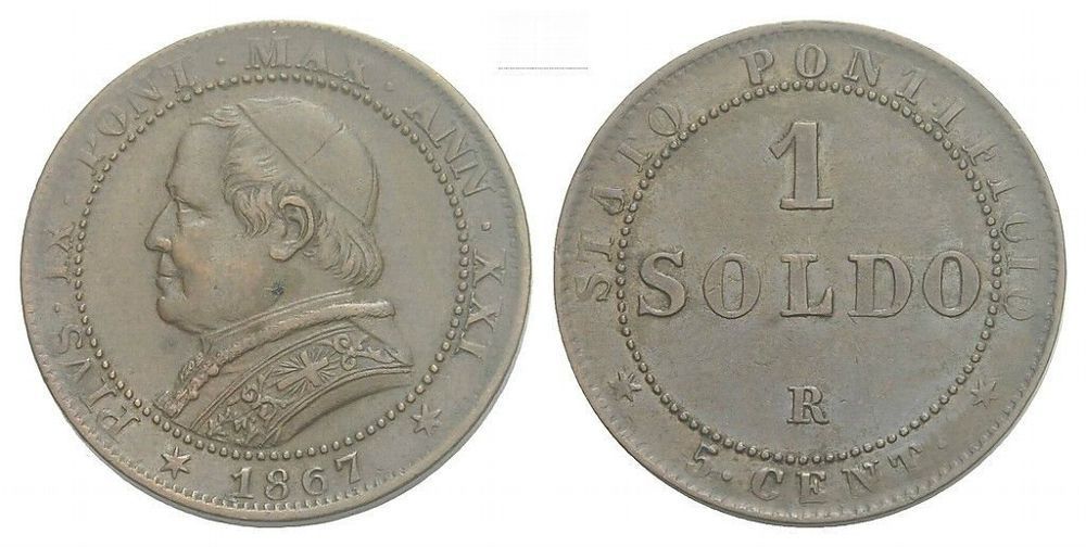 Vatikan 1 Soldo 1867 R Papst PIUS IX. (1846-1878) ss+
