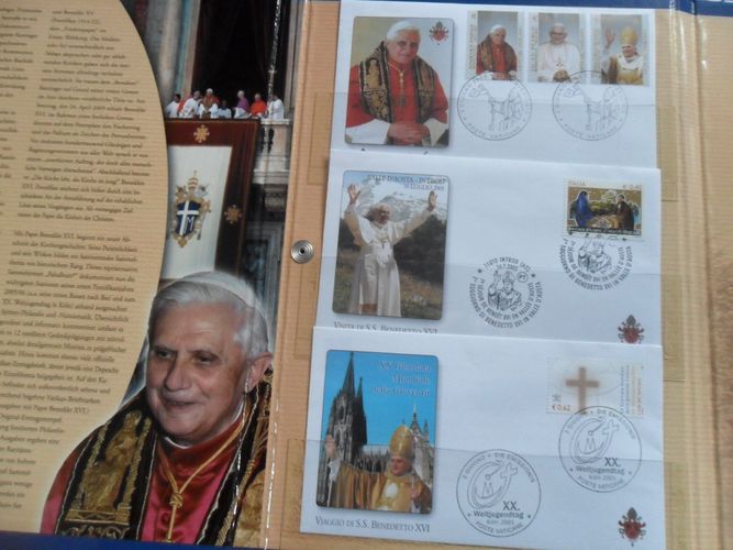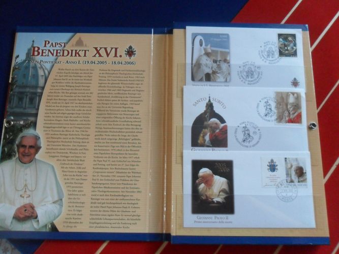 VATIKAN nach Rücktritt und Tod ist diese Kollektion sehr rar geworden und schon zum Großteil ausverkauft !! PAPST BENEDIKT XVI. Sein Pontifikat - Anno I. 19.04.2005 - 18.04.2006 10 Gedänkprägungen und 12 Papstbriefe im 5 seitigen Sammelalbum in Rom ausgegebenen Gedenkprägungen und abgestempelten Pap