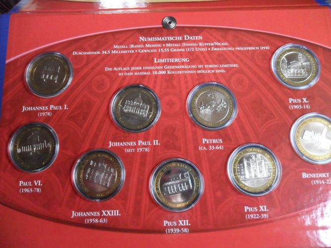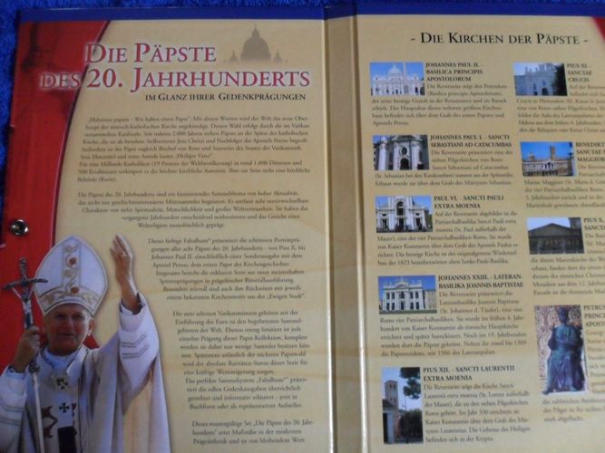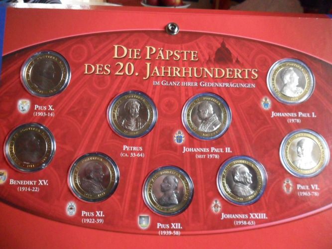 Die Päpste des 20 Jahrhunderts die offiziellen Vatikan - Gedenkprägungen von Pius X. bis Johannes Paul II. und Petrus Petrus ca 33-64 , Pius X. 1903-14 , Benedikt XV. 1914-22 , Pius XI. 1922-39 , Pius XII. 1939-58 , Johannes XXIII. 1958-63 , Paul VI. 1963-78 , Johannes Paul I. 1978 , Jahannes Paul I