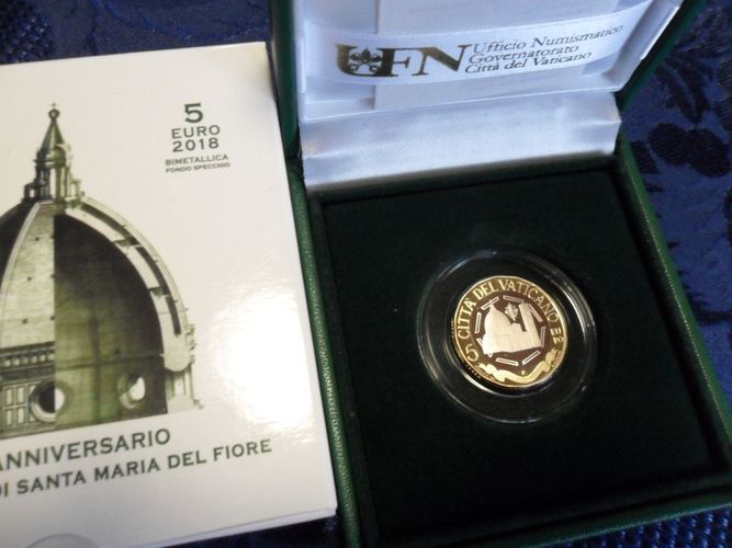 VATIKAN 2018 5 Euro Gedenkmünze PP 600 Jahre Kuppel von Santa Maria del Fiore wie vom Vatikan verausgabt im Etui mit Umkarton und Echtheitszertifikat !!!