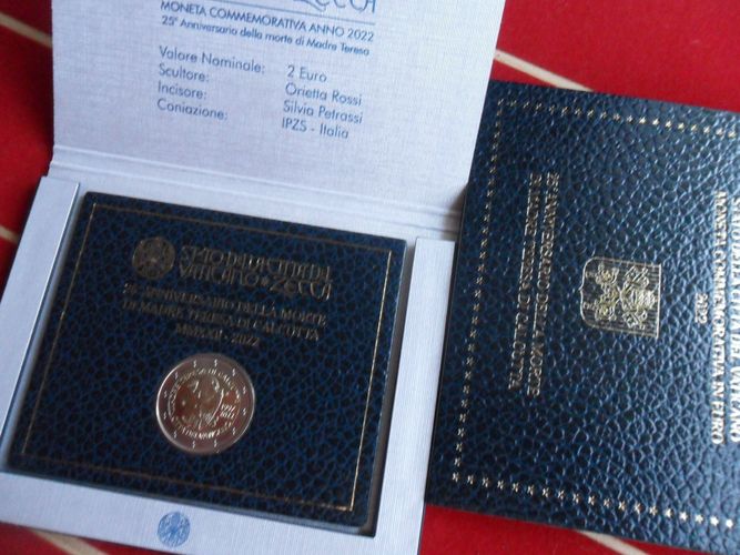 VATIKAN 2022 2 Euro Gedenkmünze 25. Todesjahr Mutter Teresa von Kalkuta im Folder 2022 gab es zwei 2 € Münzen 125.Geburtsj.P. Paul VI. + 25. Todesj.v.Mutter Teresa es sind beide Münzen eingestellt