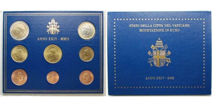 Vatikan Original KMS 2002 Stgl. komplett 1 ct-2 Euro Papst Johannes Paul II