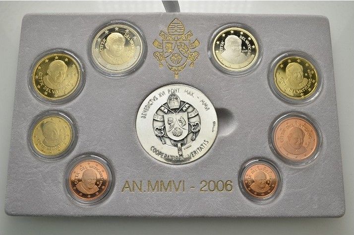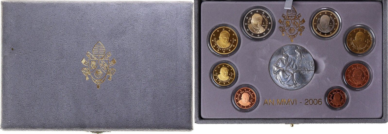 VATIKAN Original Kursmünzensatz PP Spiegelglanz 2006 komplett 1ct-2 Euro mit Silbermedaille in OVP mit Zertifikat Papst BENEDIKT XVI., Erster KMS !!, wie vom Vatikan verausgabt