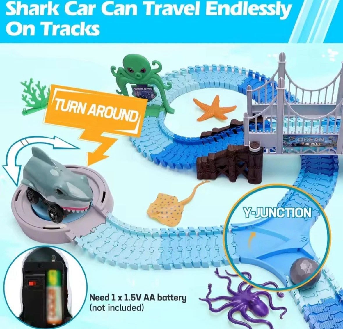 VATOS Hai-Rennbahn 1,7?m flexible Strecken mit Autos Kinderspielzeug NEU & OVP