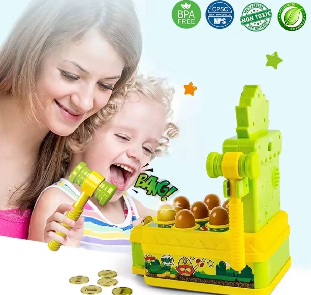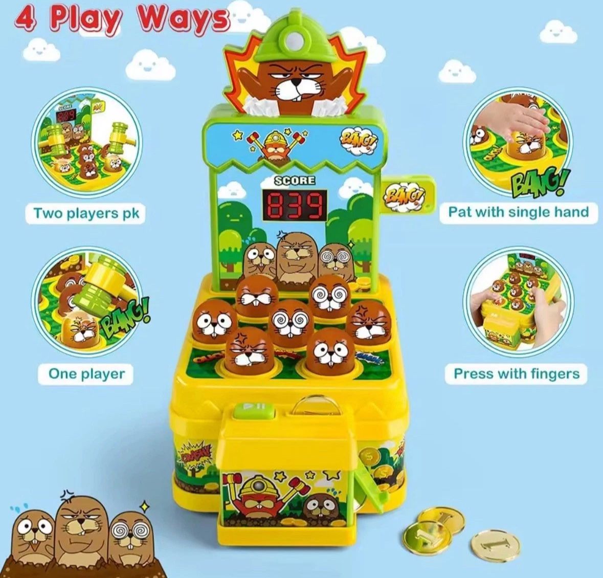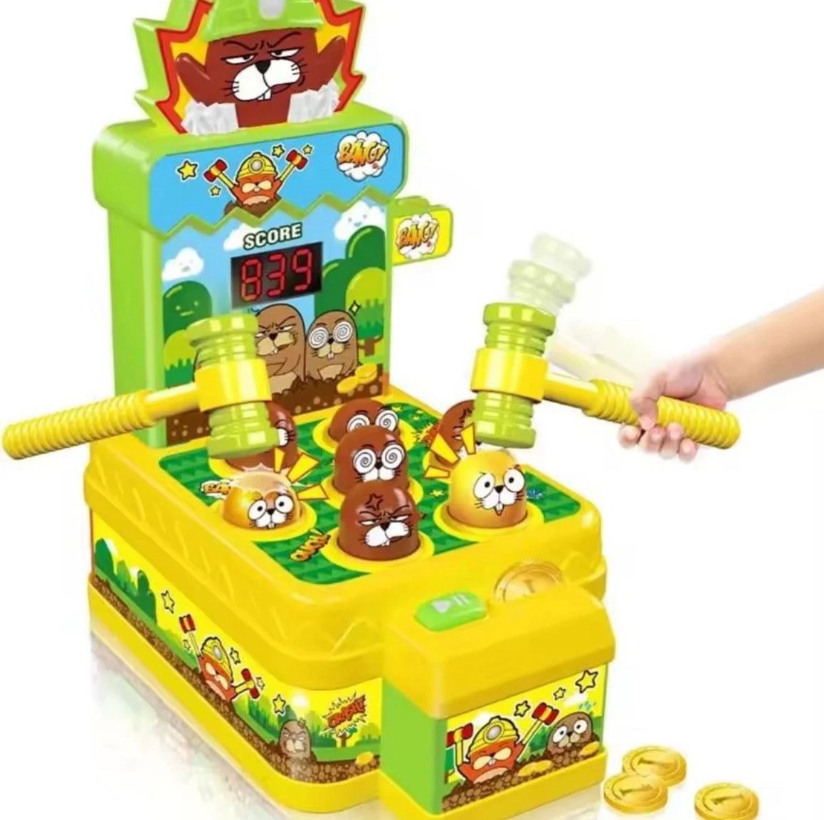 VATOS Mini Arcade Spielbank mit Münzbetrieb und 2 Hämmern Kleinkinderspiel NEU