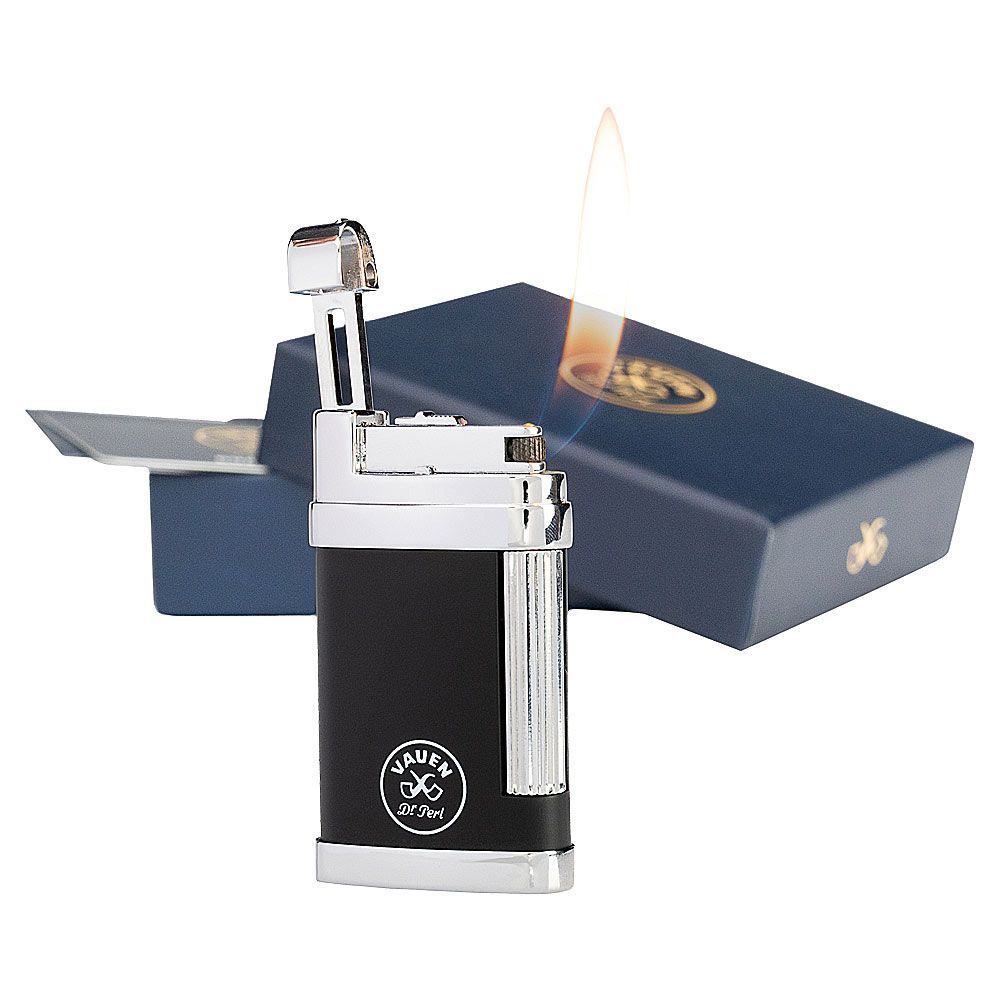 VAUEN Pfeifenfeuerzeug 597 - schwarz matt - Das VAUEN Pfeifenfeuerzeug 597, mit Steinradzündung, in der Ausführung schwarz matt, ist ein praktischer Begleiter für alle Pfeifenliebhaber. Das nachfüllbare Gas Feuerzeug mit schräger Flamme ermöglicht das stillvolle Anzünden Ihrer Pfeife. Die Normalflam