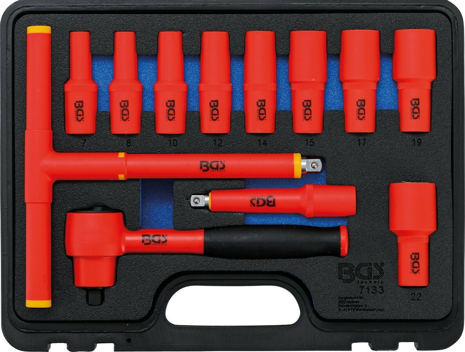 BGS VDE-Steckschlüssel-Satz | Antrieb Innenvierkant 10 mm (3/8") | SW 7 - 22 mm | 12