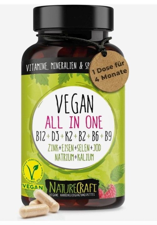 NOMEN EST OMEN - mit VEGAN ALL IN ONE bietet NatureCraft ein hochwertiges Nahrungsergänzungsmittel, welches als Multivitamin die wichtigsten Nährstoffe für eine pflanzliche Ernährungsweise in einem Komplex aus Vitaminen, Mineralien & Spurenelementen in nur einer Kapsel vereint. EINFACHE EINNAHME