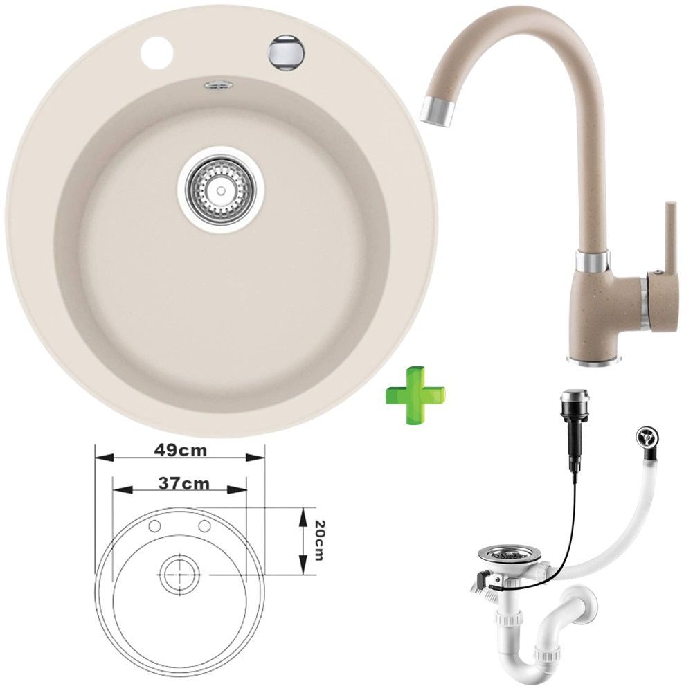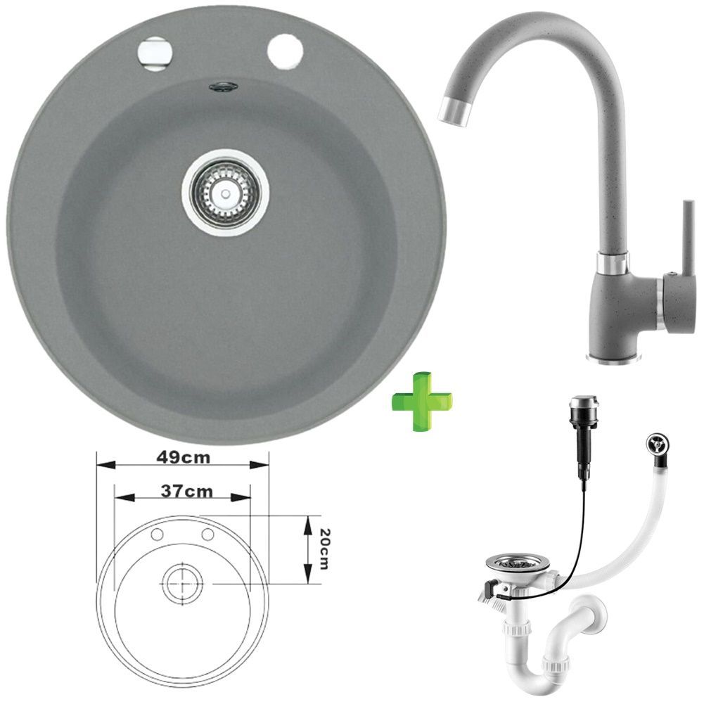 Vela Granitspüle – mit/ohne Armatur, verschiedene Farben