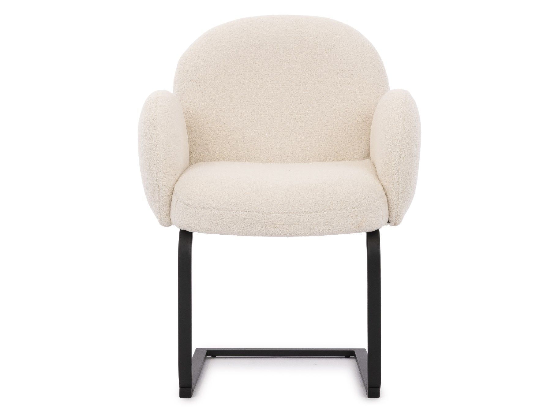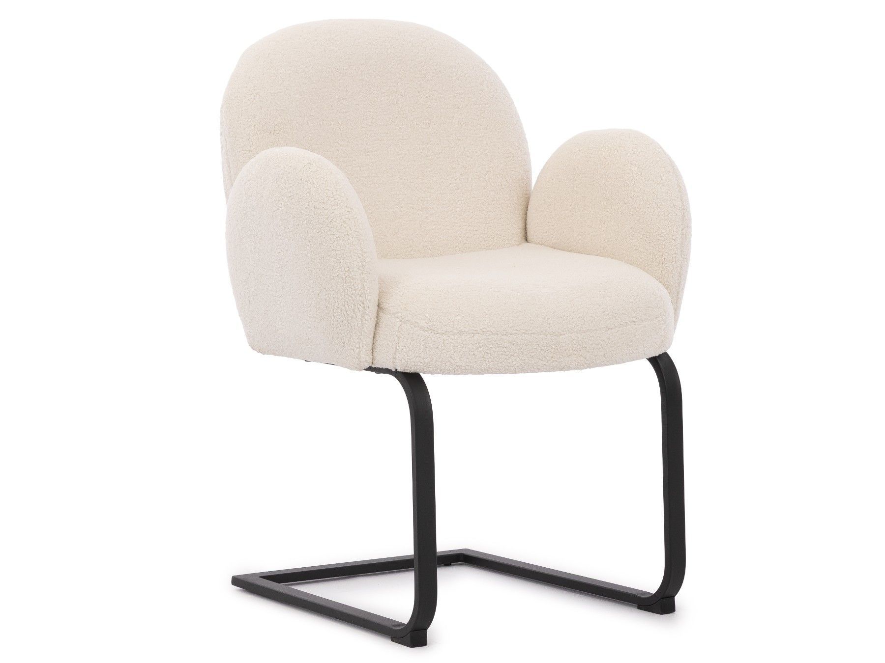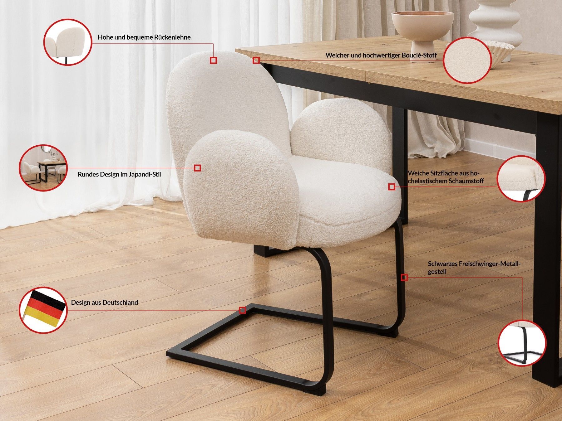 Vela - Polsterstuhl im Japandi Stil und im runden Design aus weißem Bouclé