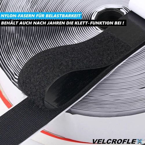 Velcroflex Klettband Selbstklebend extra Stark Klettverschluss Klebeband schwarz