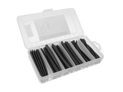 • Schrumpfschlauch-Set - schwarz mit Innerkleber - 10 cm - 85 Teile - in Sortimentsbox