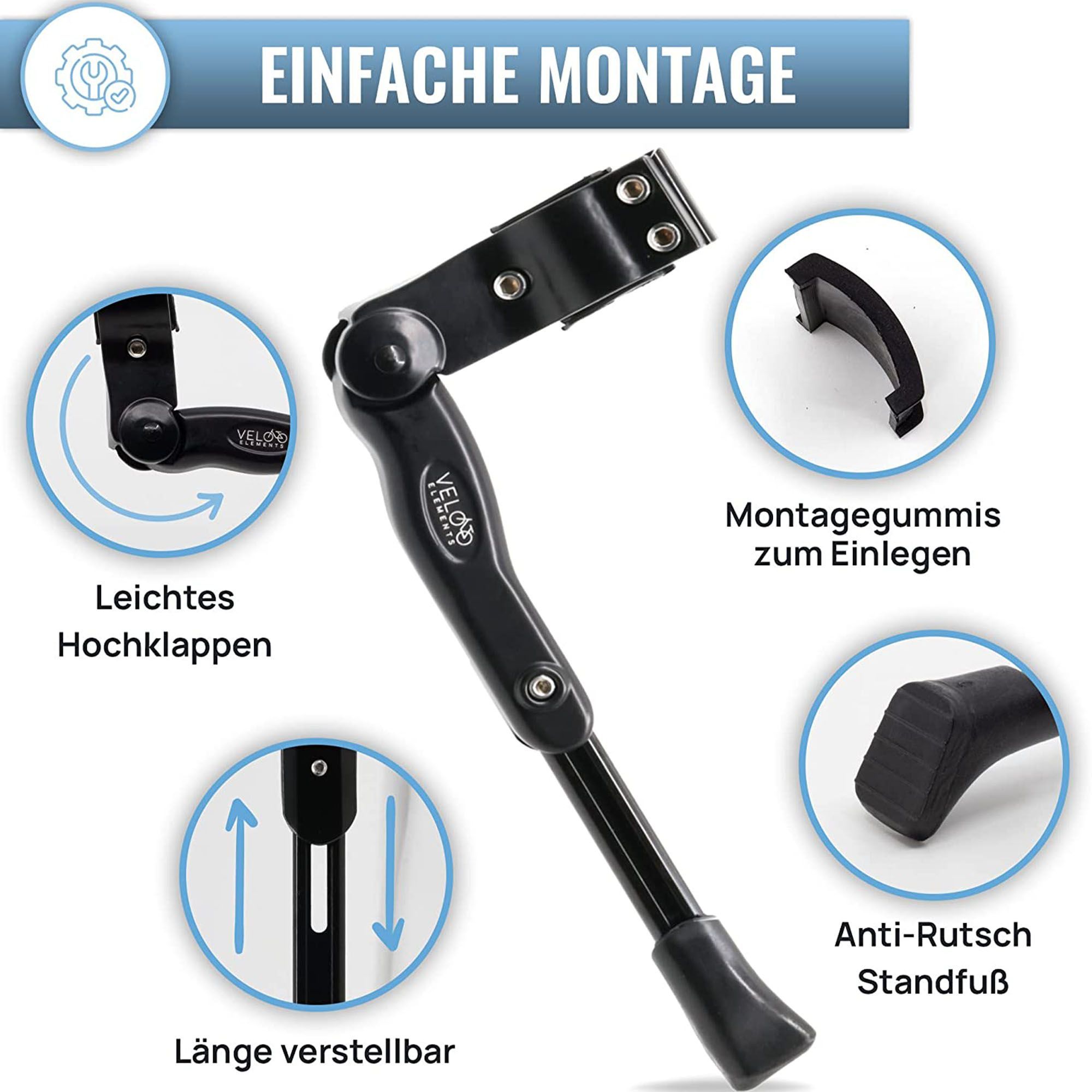 VELO Elements Fahrradständer 24-28 Zoll, Höhenverstellbarer Fahrrad Seitenständer,