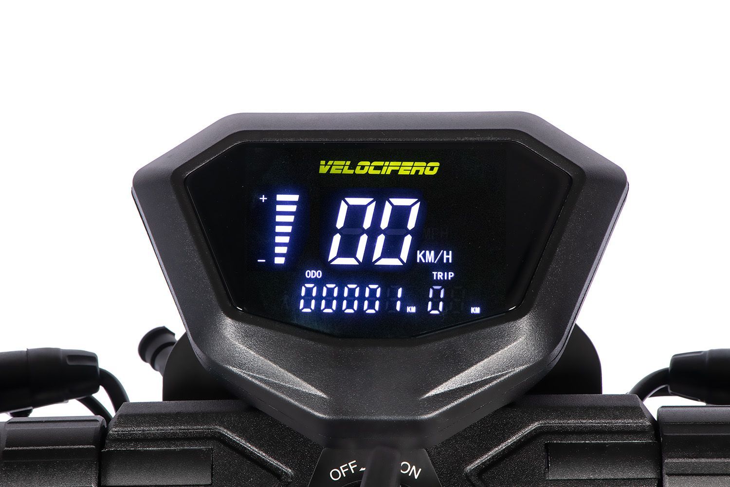 Art-No. 1172039 Velocifero Mad E-Scooter 1000W 48V EEC hub motor foldable high-strength steel frame on-road profile Besonderheiten: 1000W hub motor EEC road legal with insurance license plate Illuminated LED speedometer with battery and speed display LED headlight, LED brake light, LED tail light LE
