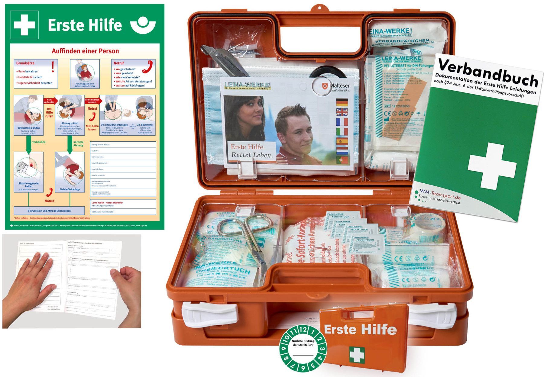 Verbandkasten (K) aktuelle DIN 13157 -DSGVO + perforiertem Verbandbuch + Aushang