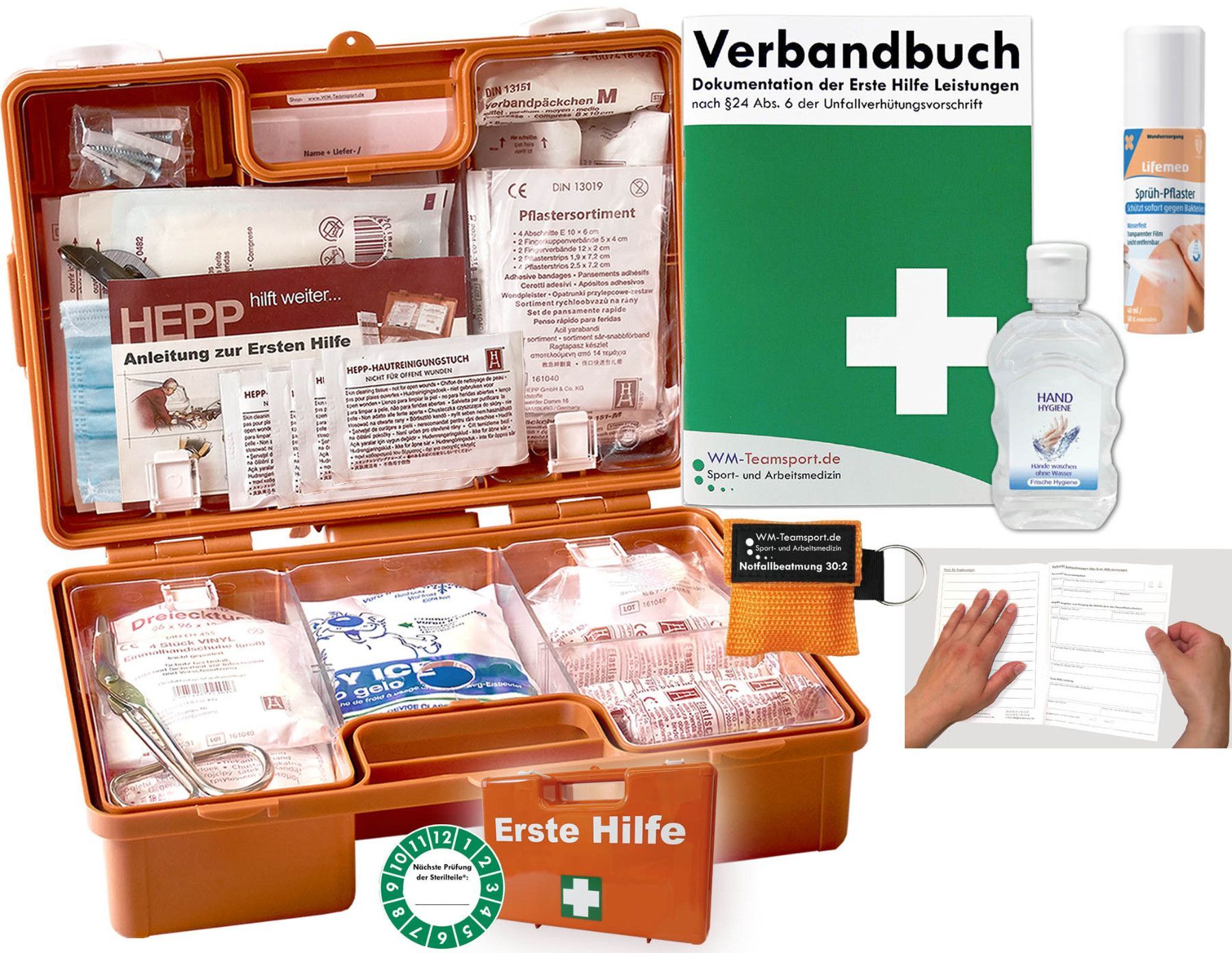 Verbandkasten (K) ARR. DIN 13157 DSGVO + Hygiene-Gel, Notfallbeatmung, Sprühpflaster