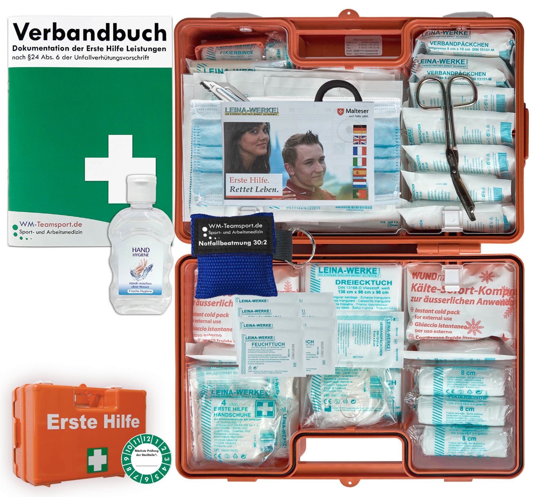 Verbandkoffer (G) - DIN 13169 f. Betriebe -DSGVO- + Hygiene-Gel, Notfallbeatmung