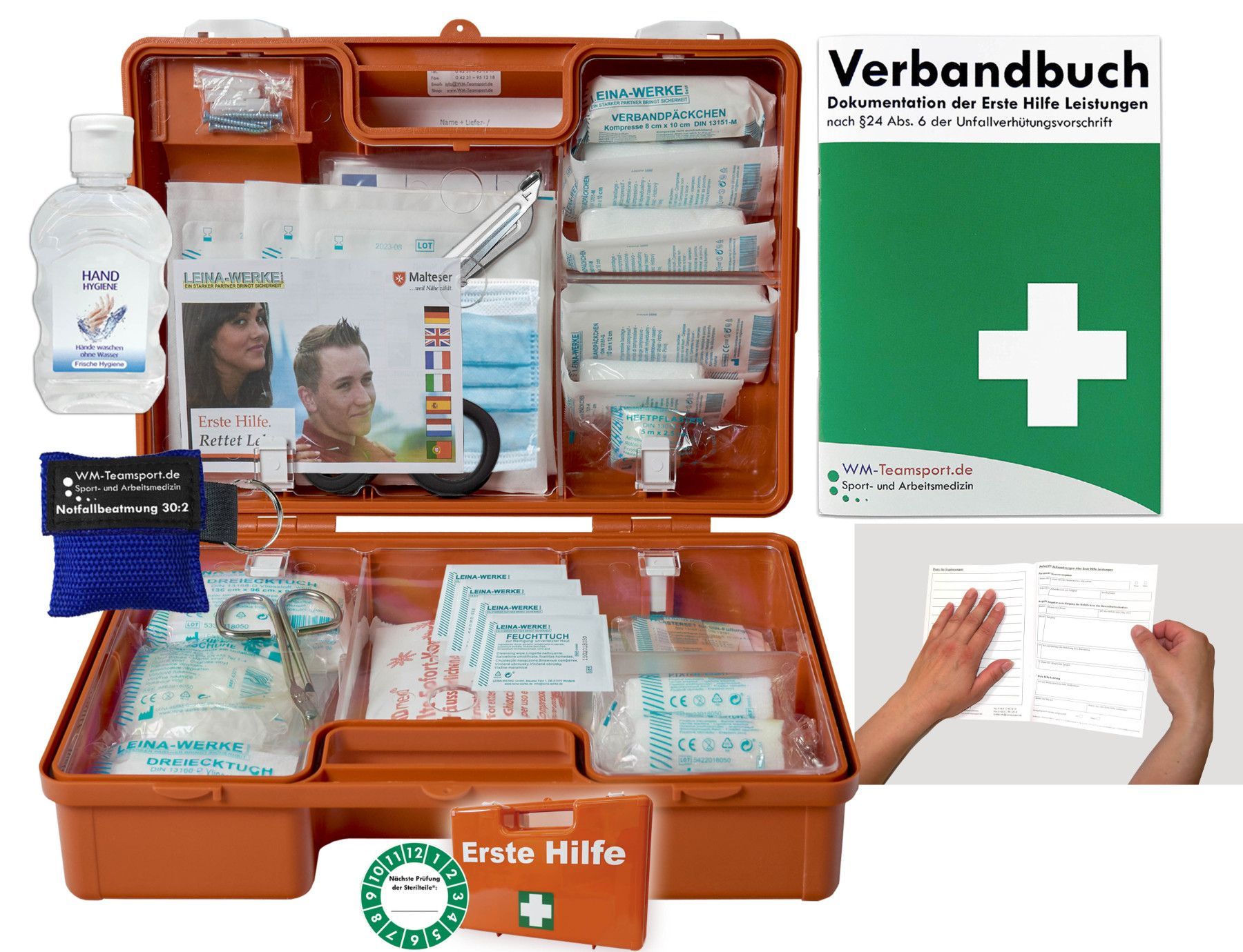 Verbandkoffer (M) - DIN 13157 f. Betriebe -DSGVO- + Hygiene-Gel, Notfallbeatmung