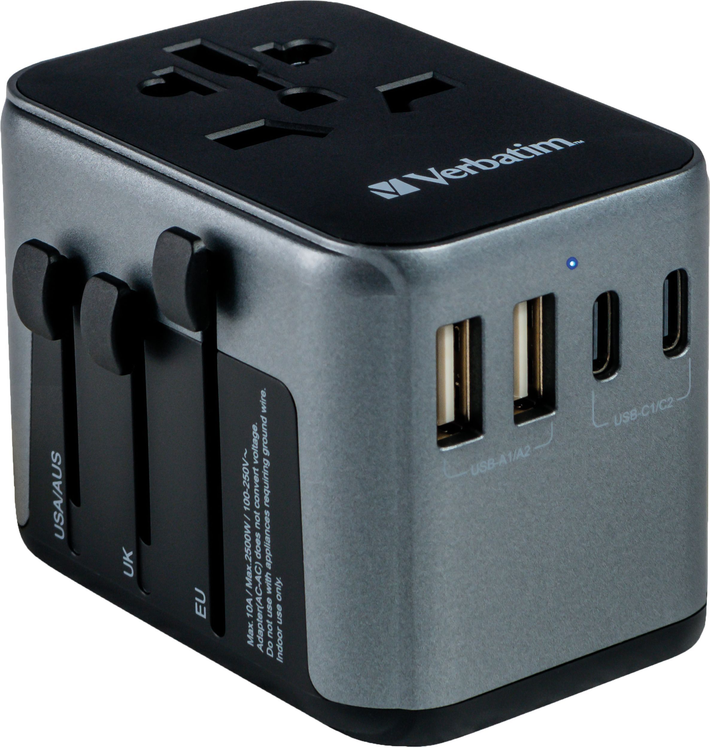 Verbatim 49545 Ladeadapter Universal Travel - UTA-03, Anschlüsse für USB Typ-A/C & St