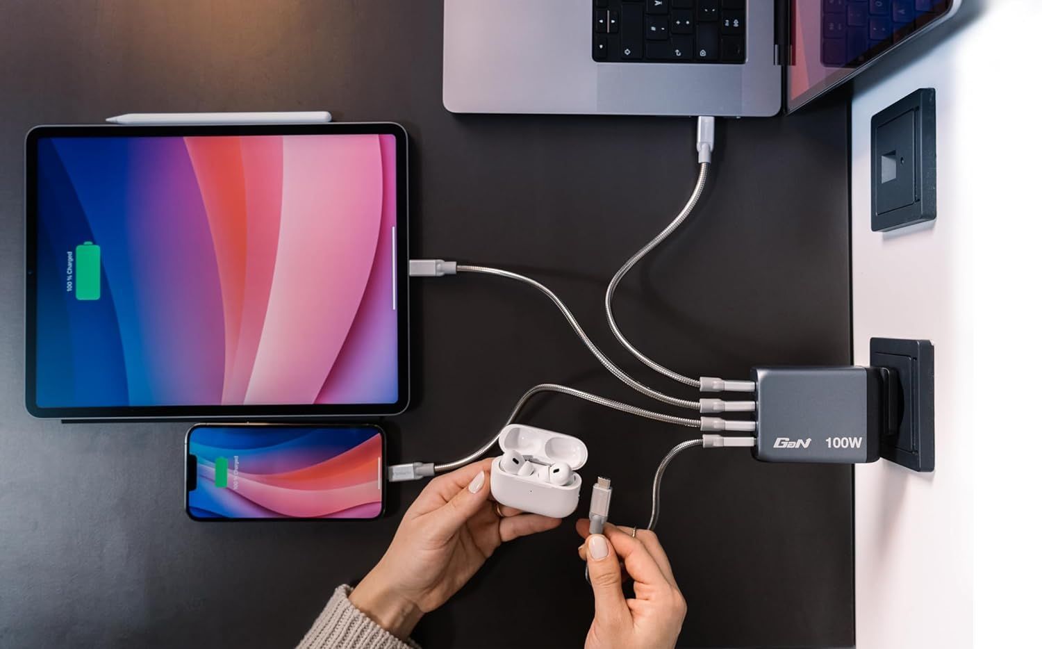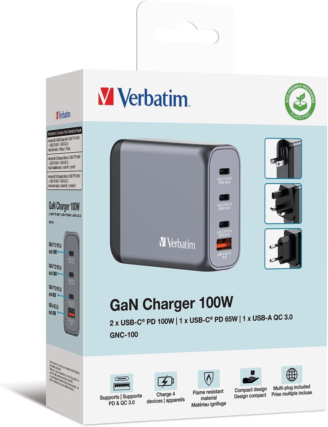 Verbatim GaN Charger 100 W, 4 Ports USB-C Ladegerät, Power Adapter mit 3 x USB-C