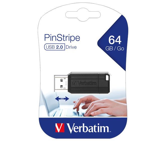 Verbatim USB 2.0 Stick 64GB, PinStripe, schwarz