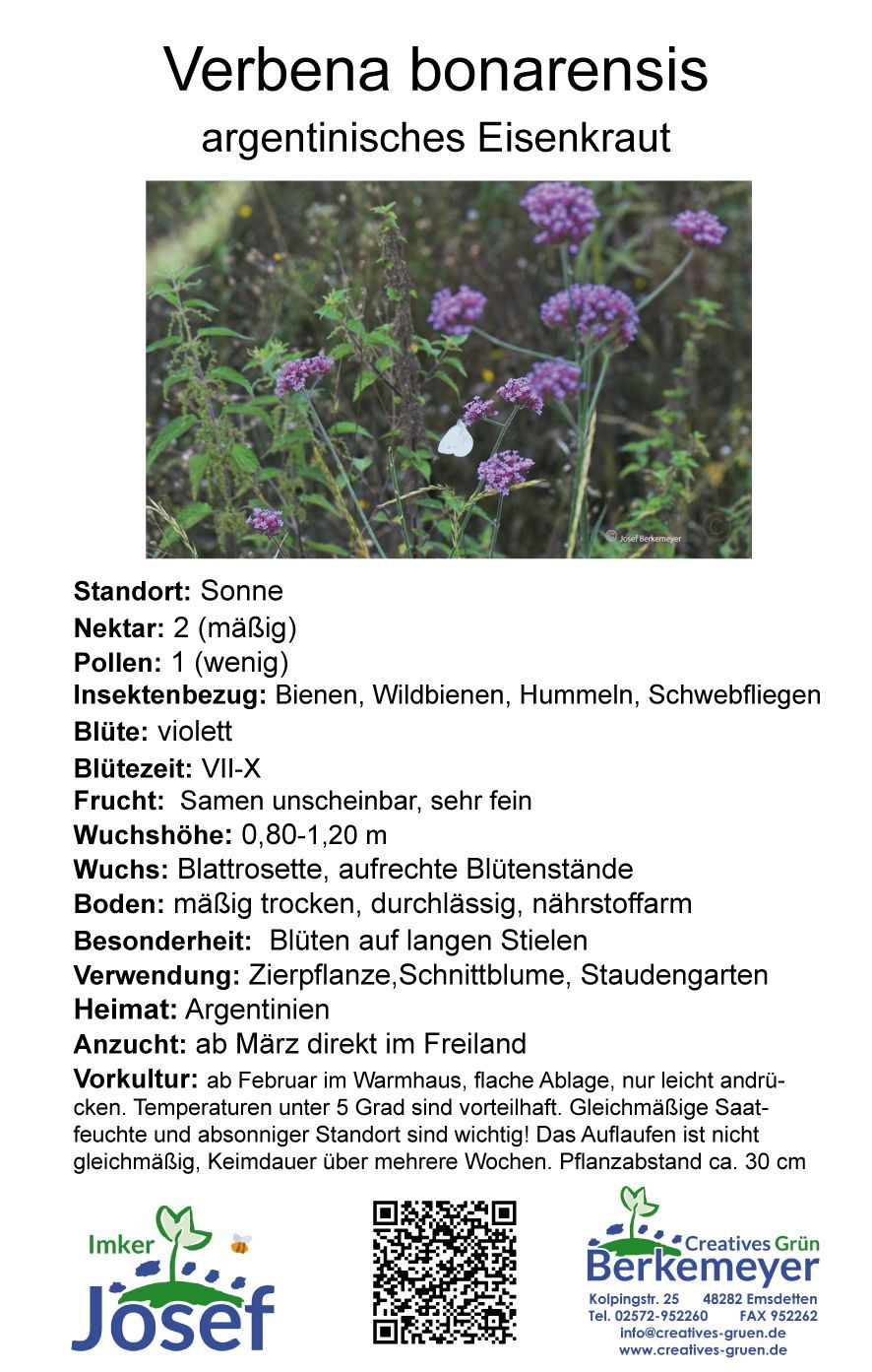 Sie kaufen hier 1 Stck. Verbena im 11cm Rundtopf Das Eisenkraut darf in Naturgärten und Präriestaudenpflanzungen nicht fehlen. Die Pflanze stammt aus Argentinien, ist ziemlich robust und verträgt auch Trockenheit. Besonders Falter werden von der Blütenfarbe und dem Nektar der Blüten magisch angezoge