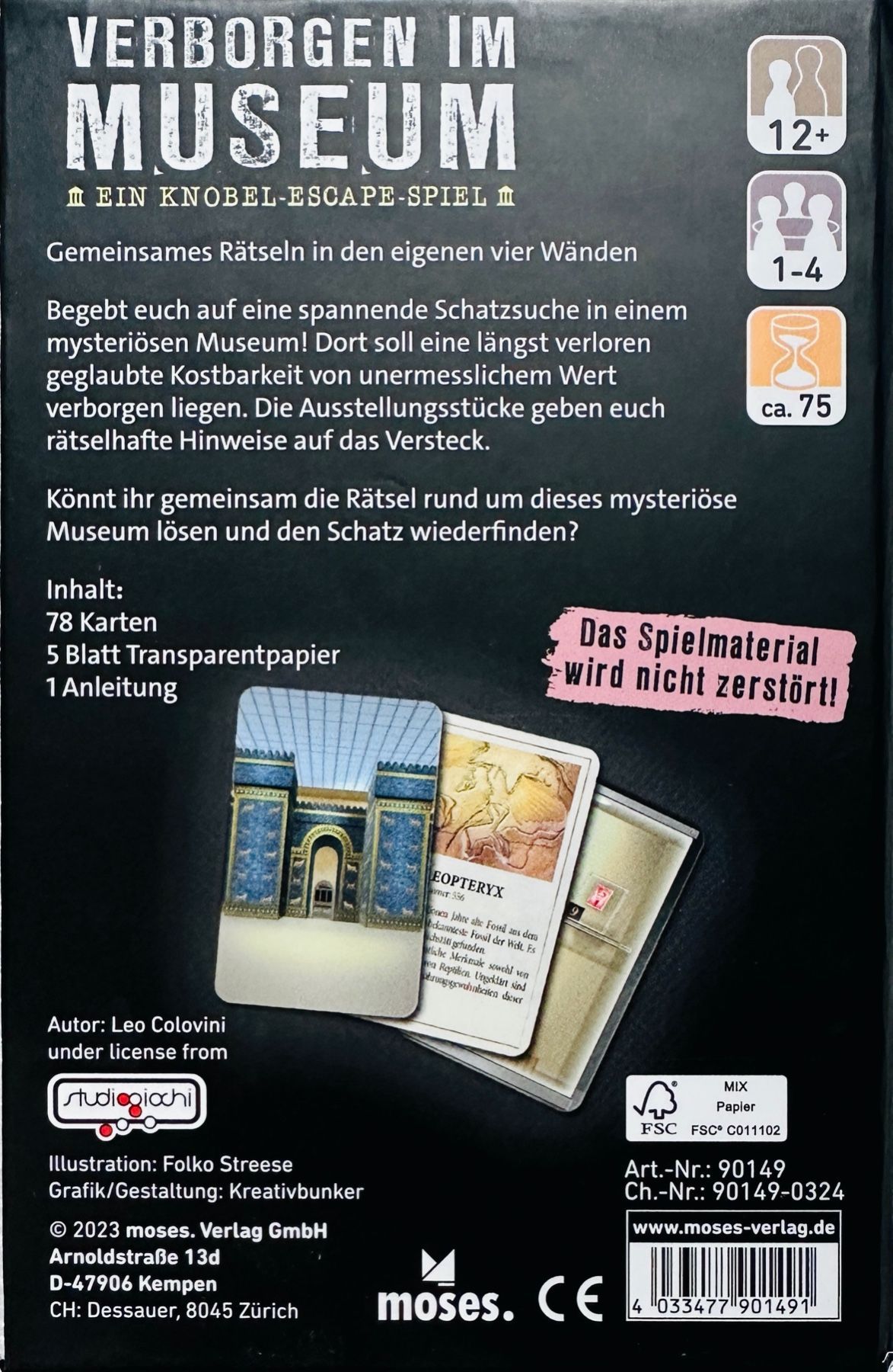 Moses Verborgen im Museum Moses Familienspiel Escapespiel Kartenspiel Rätselspiel