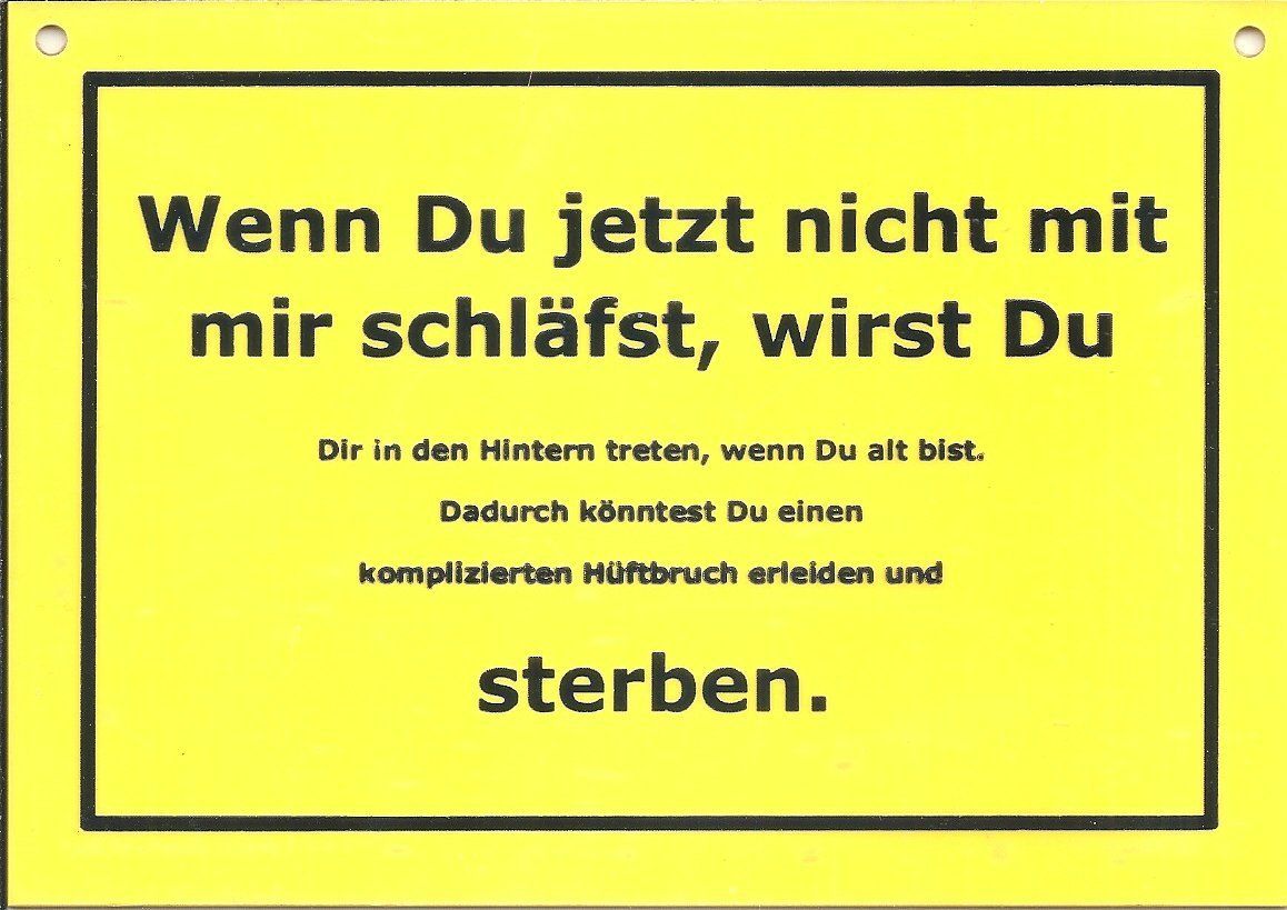Verbotene Schilder: Wenn Du jetzt nicht mit mir schläfst, ... wirst Du sterben