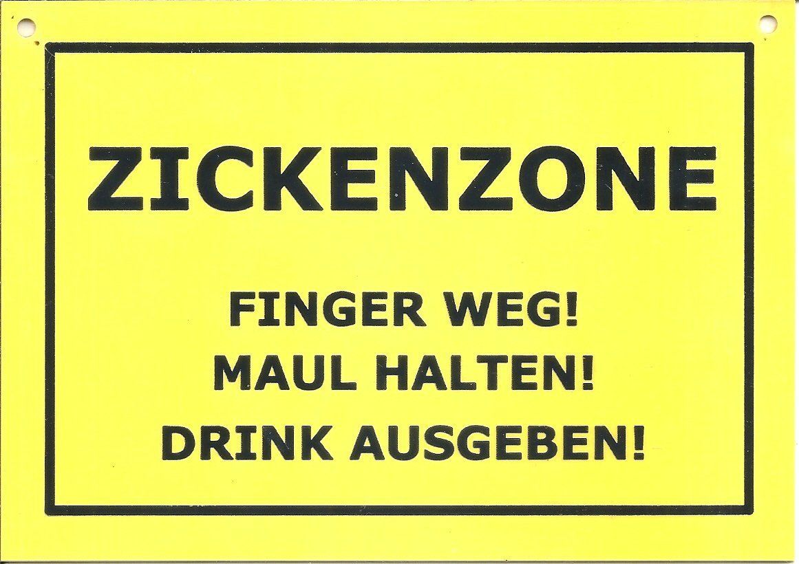 Verbotene Schilder: Zickenzone - Finger Weg! Maul halten! Drink ausgeben!