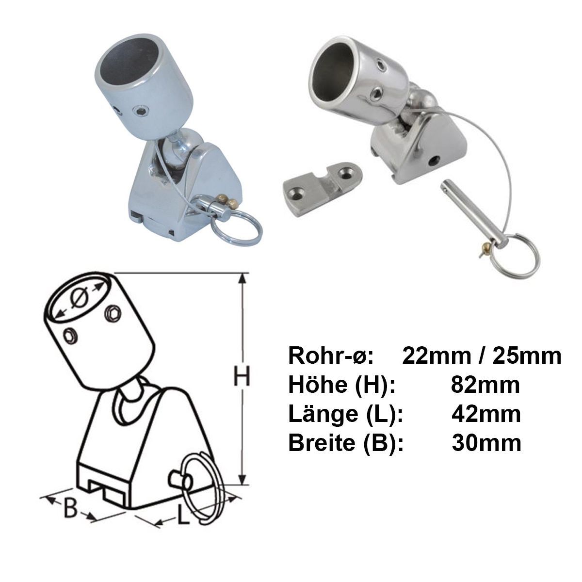 Verdeckbeschlag Bimini Gelenk Verbinder Verdeck Scharnier V4A