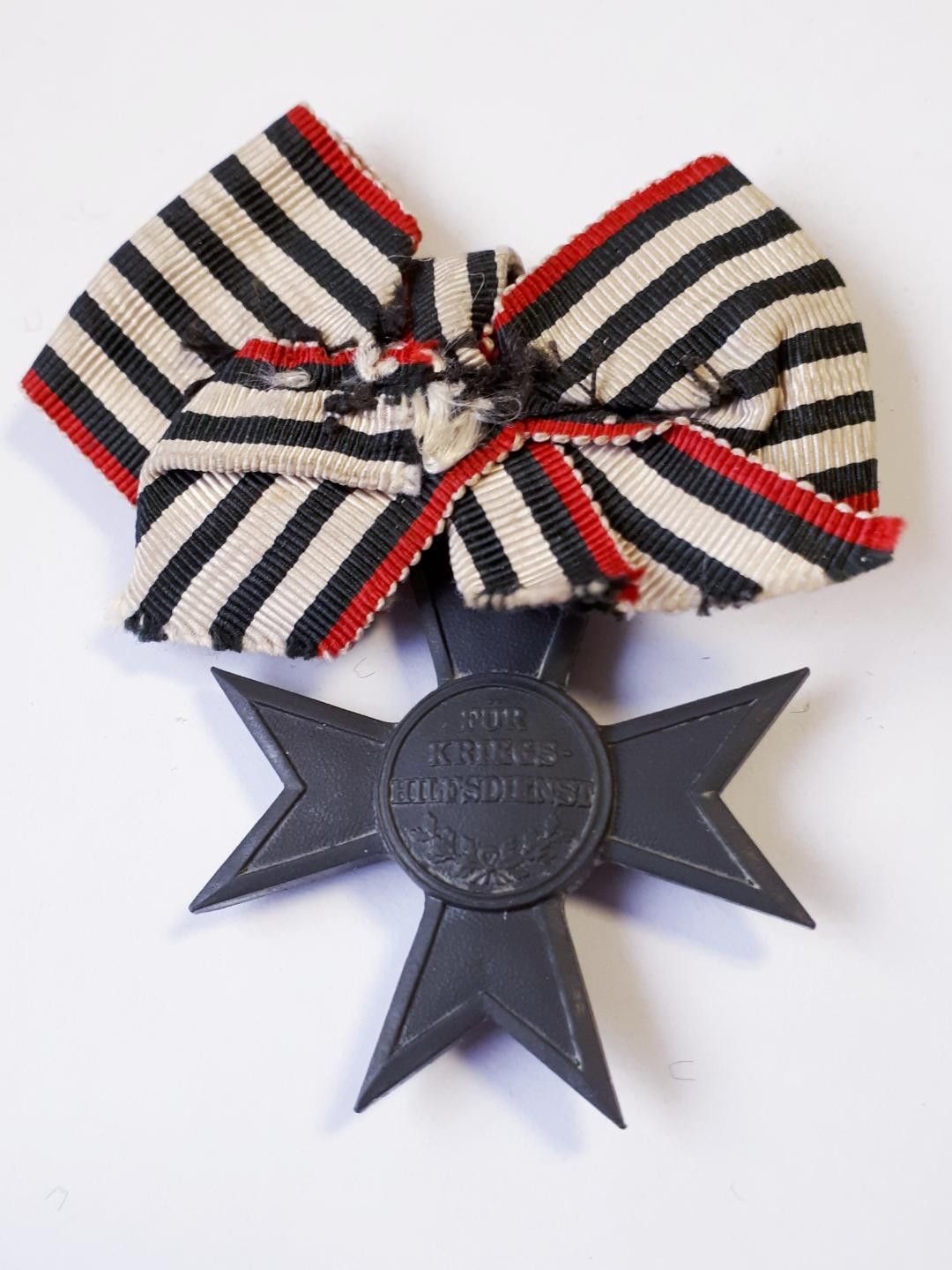 Verdienstkreuz Kriegshilfsdienst 1916 K - mit Ordensband - gestiftet 5.Dezember 1916 durch König und Kaiser Wilhelm II. Inschrift: Für Kriegshilfsdienst (Vorderseite), WR (Rückseite) Gewicht: ca. 20 g Maße: 4 cm x 4 cm Zustand: gut - gebraucht mit altersüblichen Gebrauchsspuren