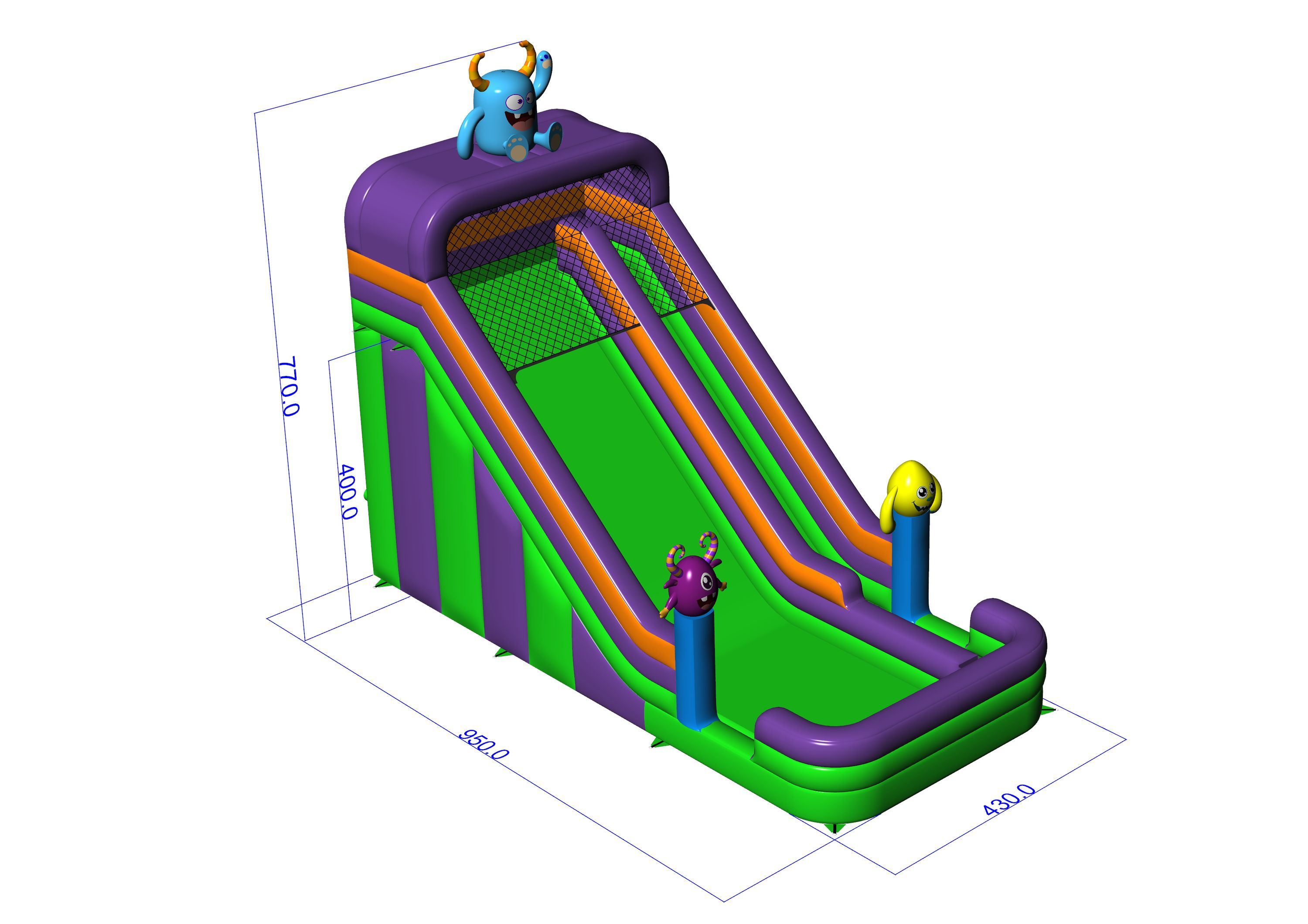 Vergrößerte aufblasbare Rutsche im Monstermotiv