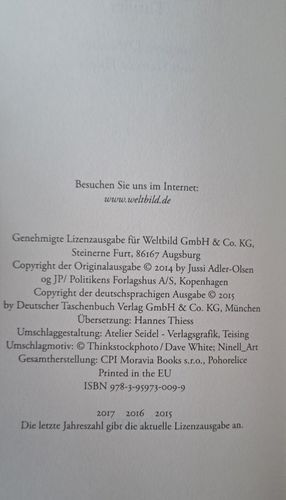 Sie bieten hier auf eine TB-Ausgabe des Romans Krimi-Thrillers Verheißung von Jussi Adler Olsen aus 2017 ! Zustand ist Sehr gut -siehe Zustandsbeschreibung weiter oben ! Inhalt siehe Fotos weiter unten oder bei Google ! Achtung Privatverkauf ! Keine Rücknahme oder Garantie ! Beachten Sie auch meine