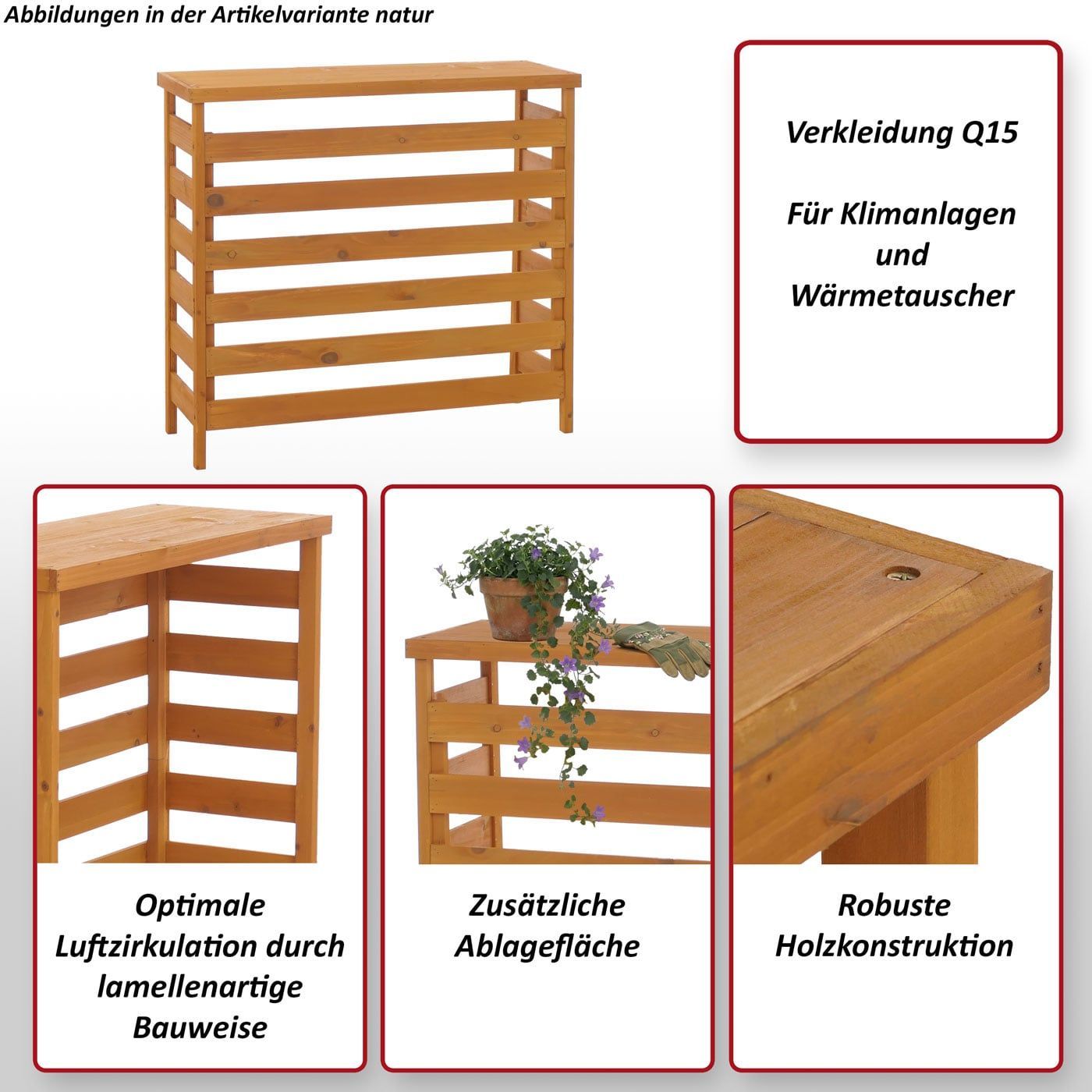 Mendler Verkleidung für Klimaanlage/Wärmetauscher HWC-Q15, Abdeckung Holz FSC® 78x84x32cm