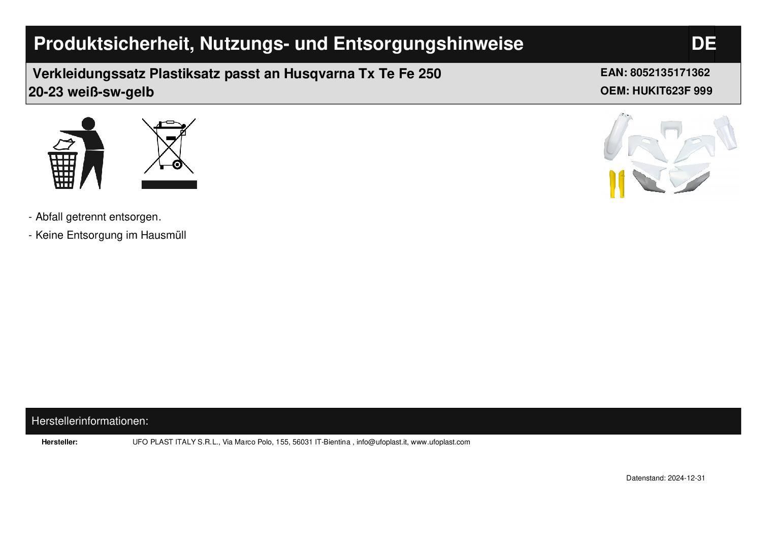 • Verkleidungssatz Plastiksatz plastic kit fork passt an Husqvarna Tc Fc 2025 sw