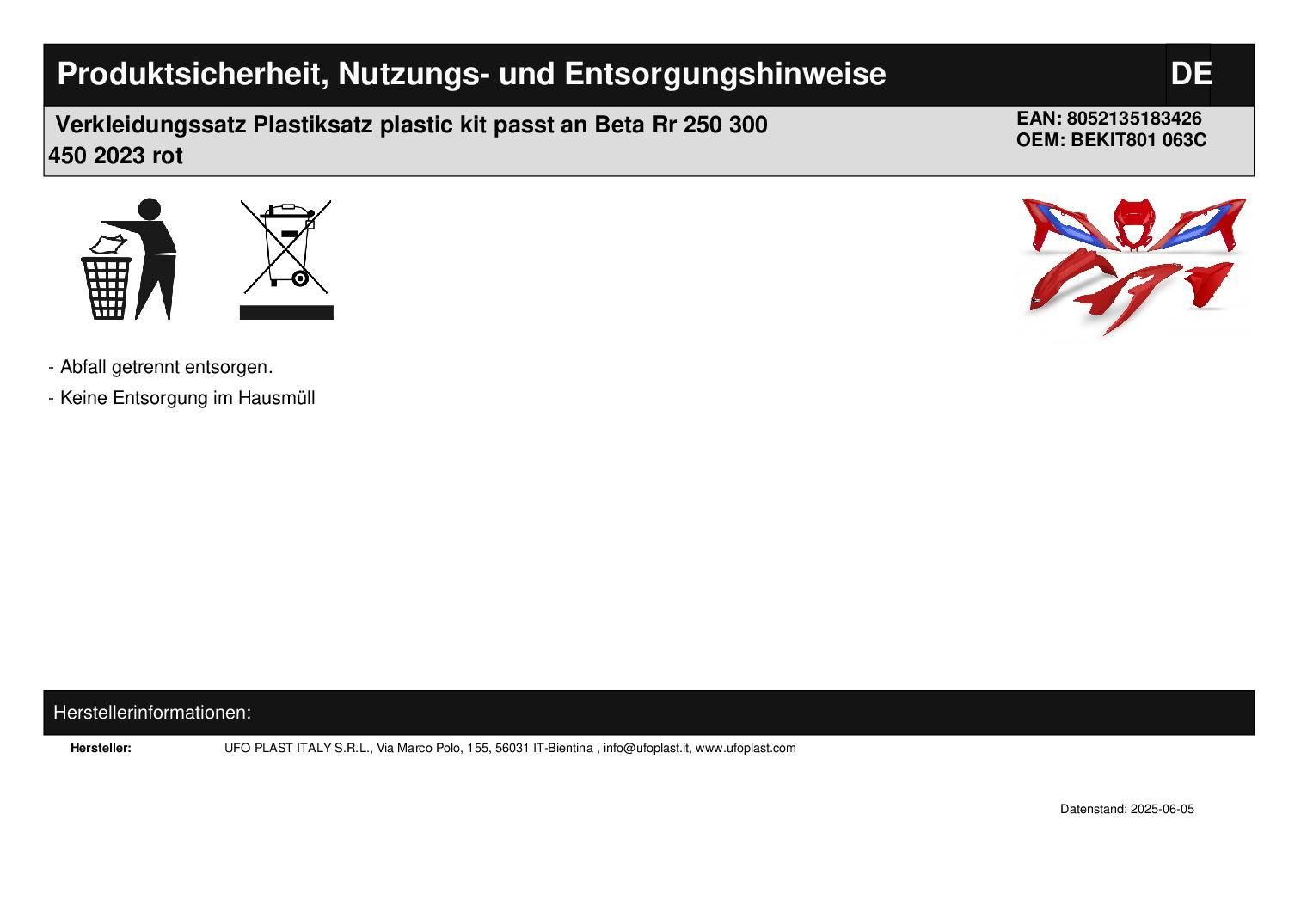 Verkleidungssatz Plastiksatz plastic kit passt an Beta Rr 250 300 450 23-24 r-bl