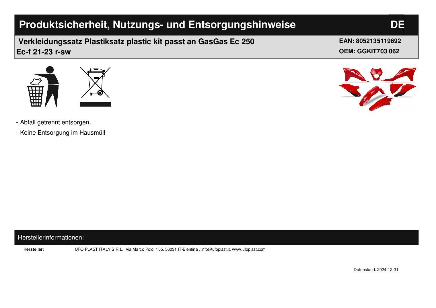 Verkleidungssatz Plastiksatz plastic kit passt an GasGas Ec 250 Ec-f 21-23 r-sw