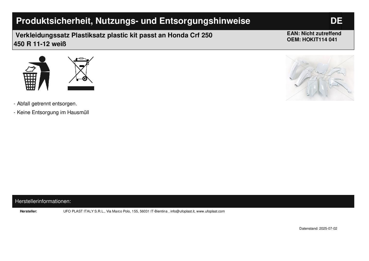 Verkleidungssatz Plastiksatz plastic kit passt an Honda Crf 250 R 18-21 450 sw