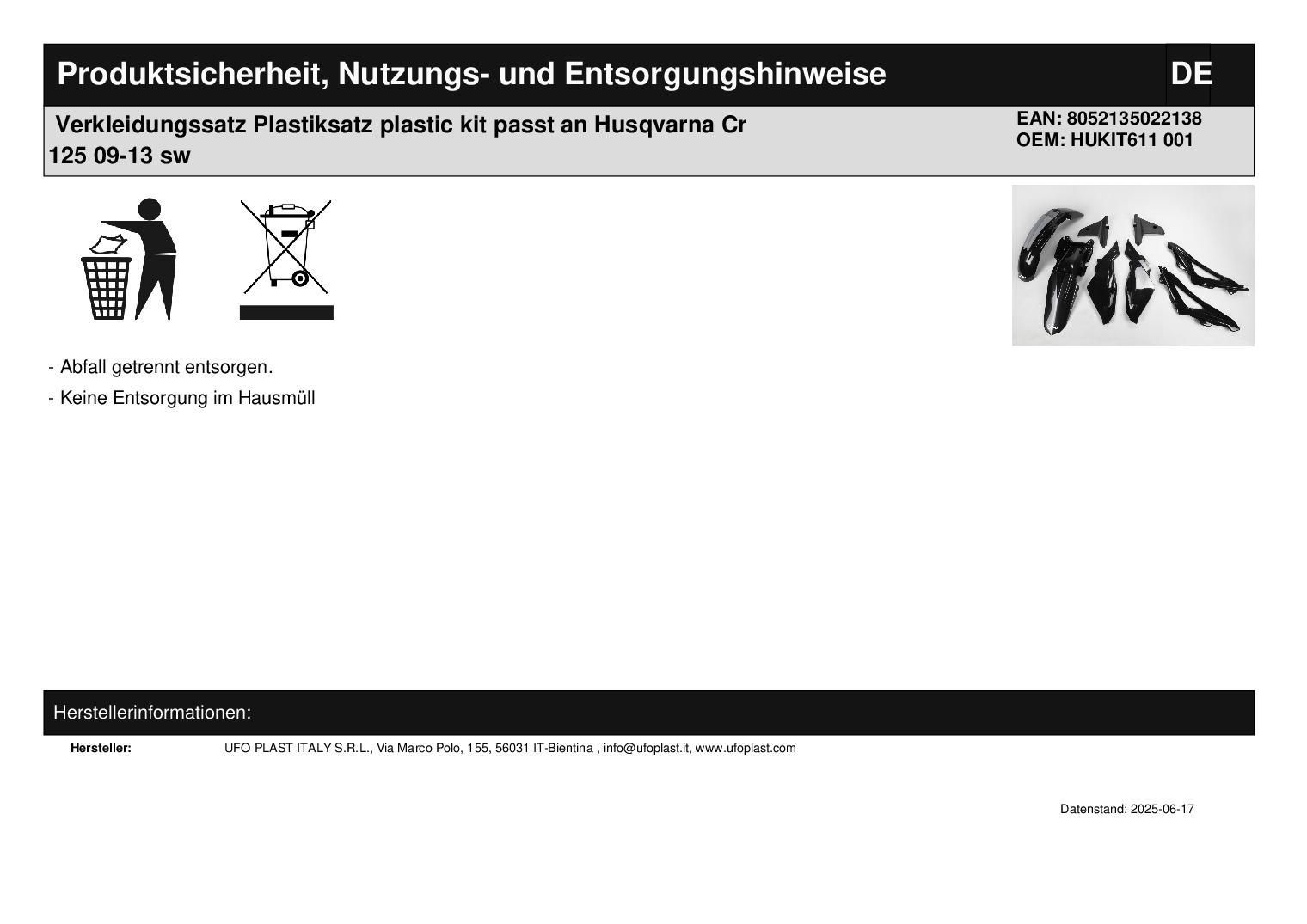 Verkleidungssatz Plastiksatz plastic kit passt an Husqvarna Cr 125 sw 2. Wahl
