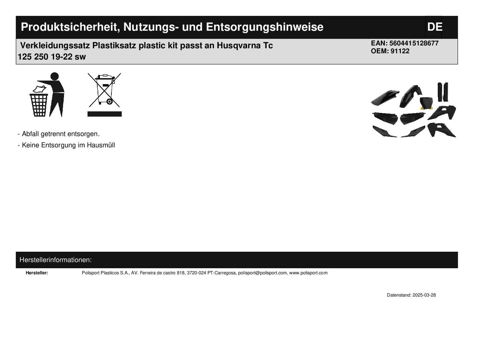Polisport Verkleidungssatz Plastiksatz plastic kit passt an Husqvarna Tc 125 250 19-22 sw