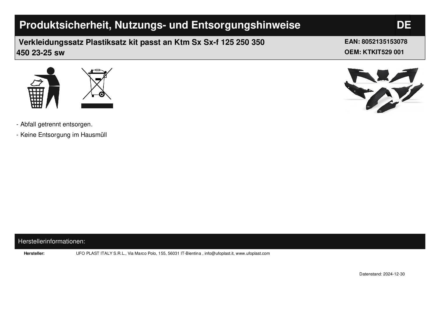 Verkleidungssatz Plastiksatz plastic kit passt an Ktm Sxf 250 350 450 23-25 sw