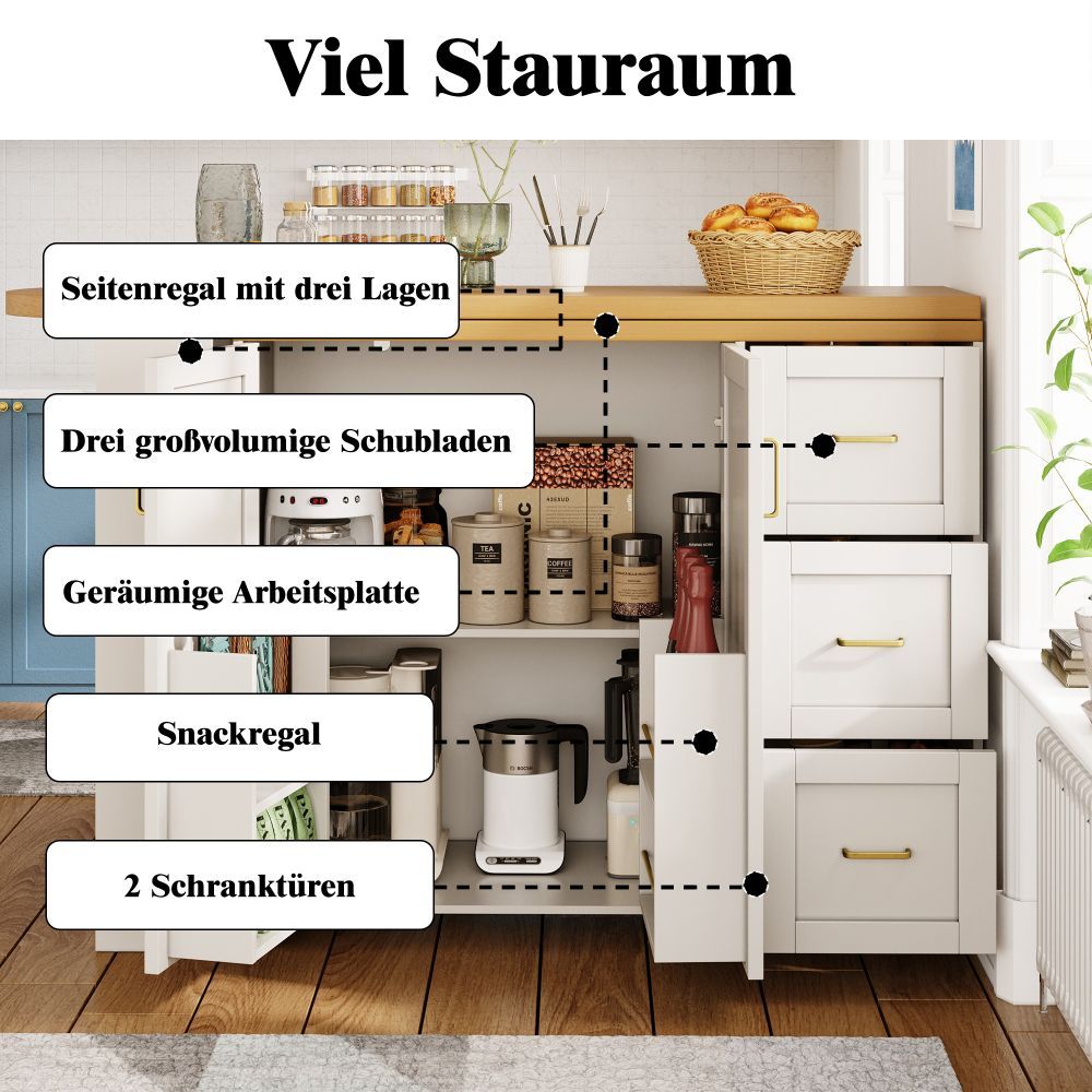Verlängerbarer Barwagen rollbar 2 Türen 3 Schubladen Weiß Schwarz