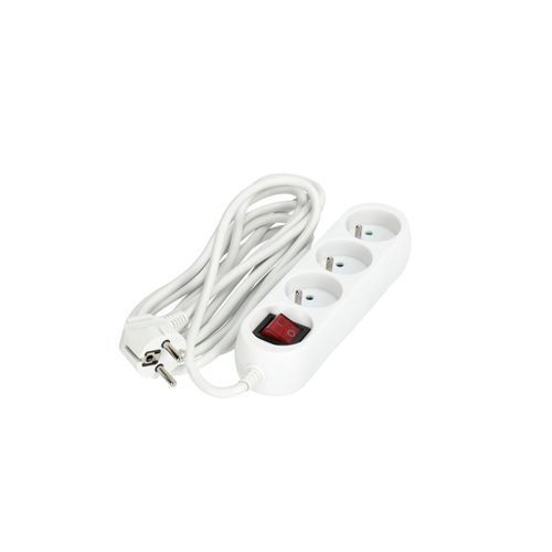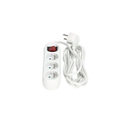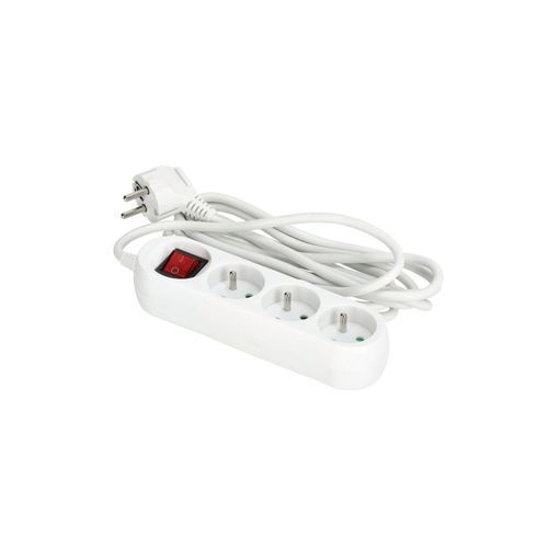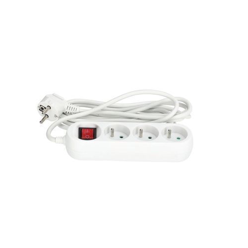 Verlängerungskabel 3-Steckdosenleiste Länge 3 Meter weiß Erdung und Ein/Aus-Schalter