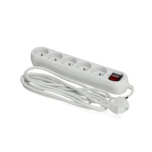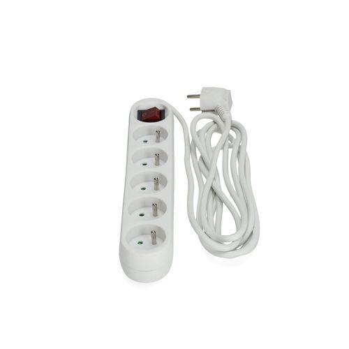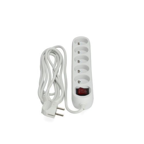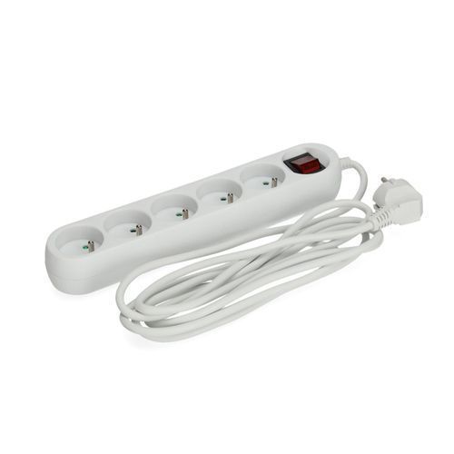 Verlängerungskabel 5-Steckdosenleiste Länge 3 Meter weiß Erdung und Ein/Aus-Schalter