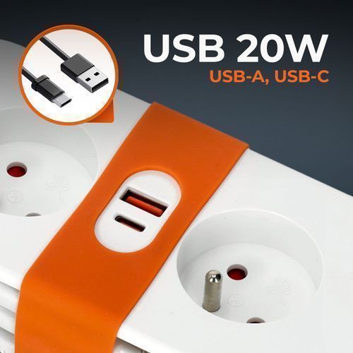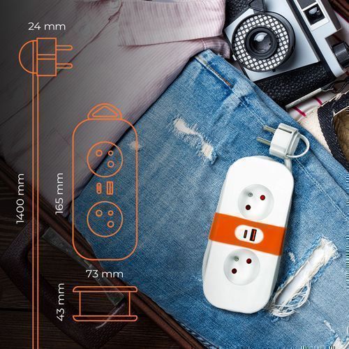 Verlängerungskabel mit Flachstecker 2 Fach Steckdosenleiste Mehrfachsteckdose USB